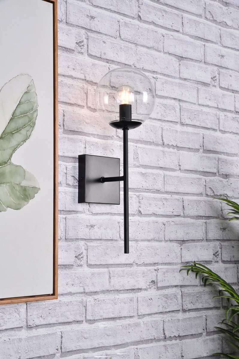 The Neri Collection wall sconce is a distinctive light that will pop in your room. The globe shade and sleek straight arm creates a clean form. The two bulbs allow themselves to brighten up the room in both directions. Available in a black and/or brass finish, and a clear or white shade, let this wall lamp illuminate your room. You can choose whether to have one or two lights. This product is dimmable and requires one or two E12 lamps. Light bulbs not included.