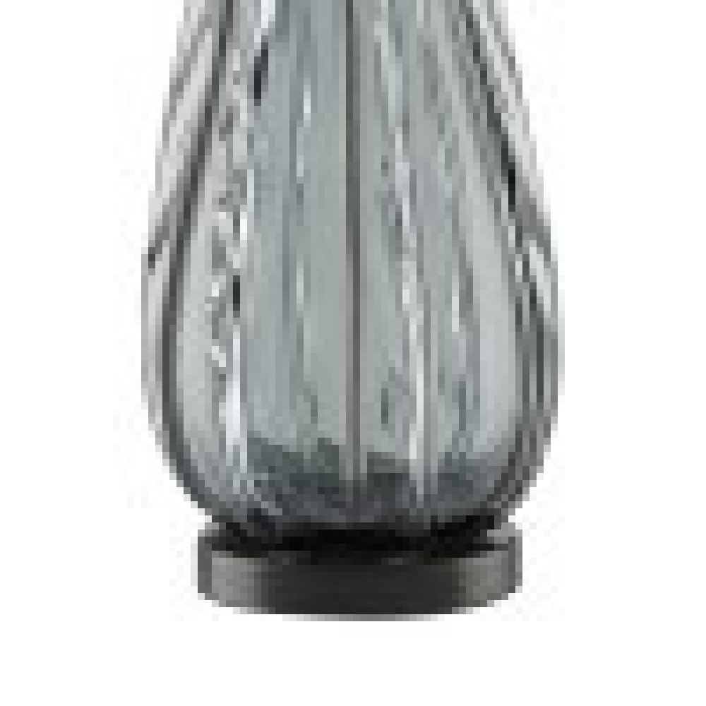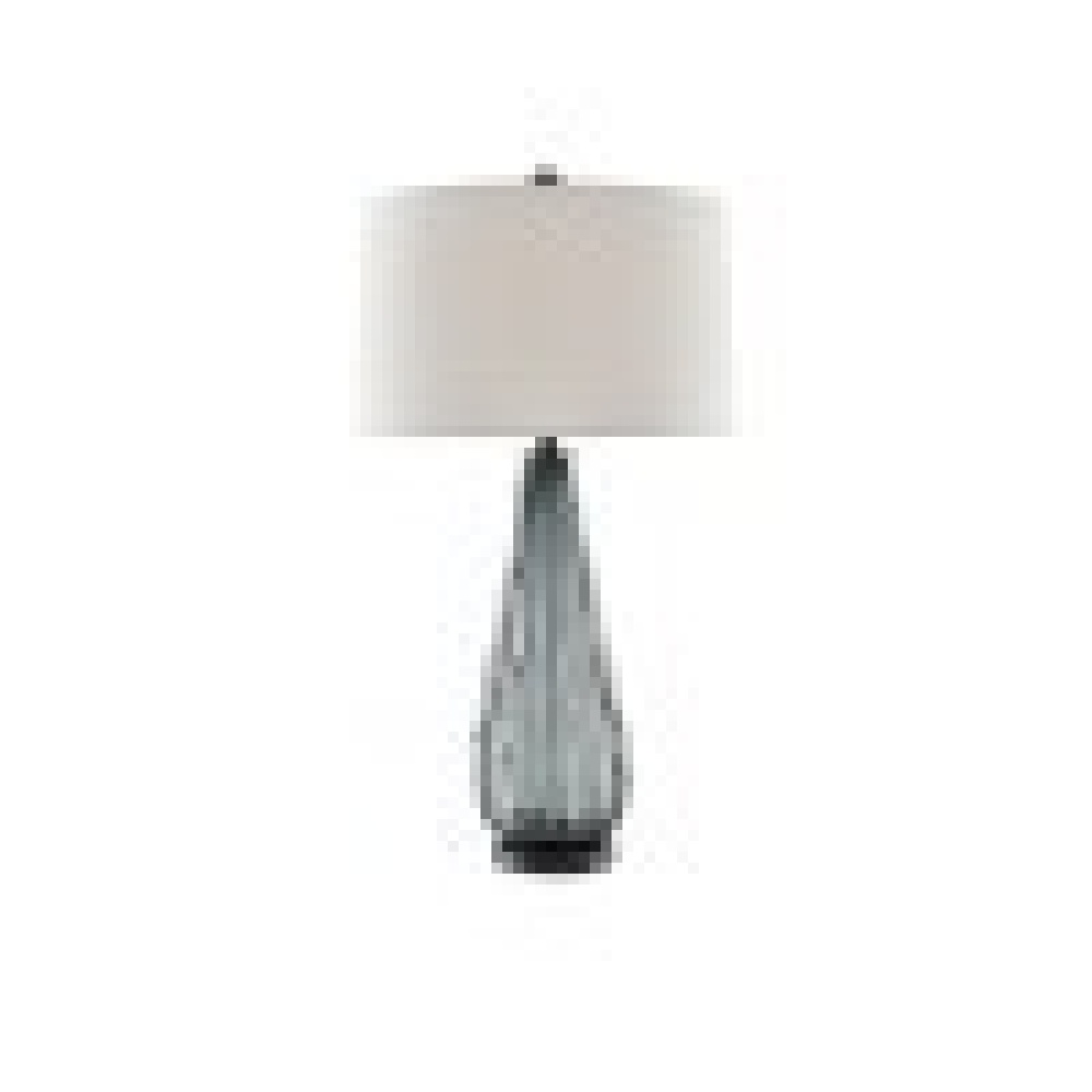 Place the Nightcap Table Lamp on a bedside table and it will be the last thing you toast each night as you turn out the lights at bedtime. Its stylishly stunning column of glass is hand-formed with vertical ribbing throughout the blue-gray blown glass. Satin black hardware enhances the smoky appeal of the lamp, which stands 33 inches high and is topped with an off-white shantung shade.