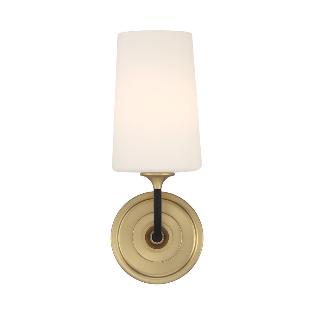 Combining contemporary and industrial styles, the Niles sconce is a striking addition to any style home. Its elegant elongated arms gracefully lift upwards to hold tapered white glass shades. Its Black Forged metal frame is highlighted with the perfect balance of gold accents. The versatile Nile collection provides warm and welcoming light to various decor styles and spaces.