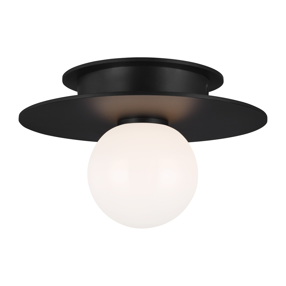 Nodes task, ceiling and wall lighting is minimal yet bold, highlighting Kelly's distinctive juxtaposition of mixed-materiality and curvilinear form. Light radiates from milk glass globes set against metal discs. All fixtures can be used or without the discs. The cast canopy is available in Burnished Brass or Midnight Black. Hanging fixtures within this family feature black fabric cords, while pivot sconces can be cord and plug or hard wire.