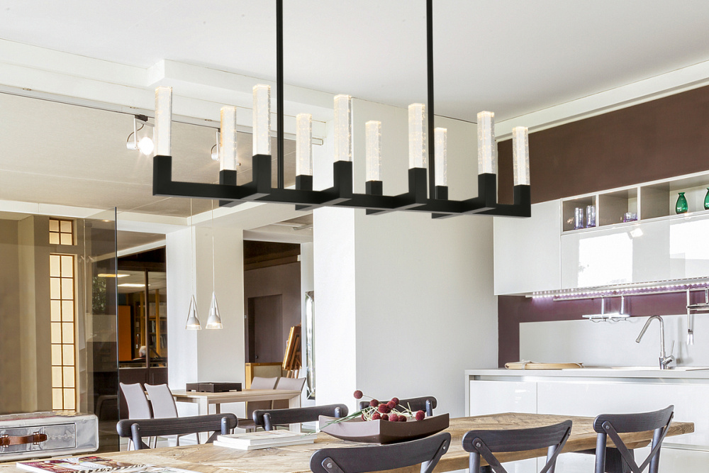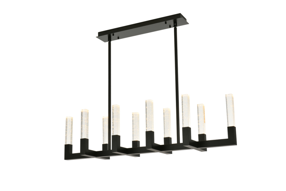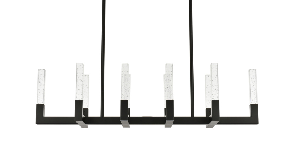 "Introducing the Noemi 48-inch pendant—an extraordinary blend of contemporary design and industrial elegance. with its chic linear silhouette, this pendant light adds a modern flair to your decor. The seeded glass crystal rods create a captivating play of light, enhancing your space with timeless elegance. Crafted from enduring iron and ETL certified for safety, the Noemi ensures a perfect balance of enduring quality and brilliant illumination with energy-efficient LED lights. Customize your ambiance effortlessly with the adjustable color temperature feature. Whether you seek a relaxed evening glow, a neutral and focused atmosphere, or a vibrant and energizing radiance, our chandelier provides the flexibility to cater to your preferences. Elevate your space with personalized illumination, creating the perfect setting for every moment. The Noemi 48-inch pendant is a statement of sophistication and functionality for your home."