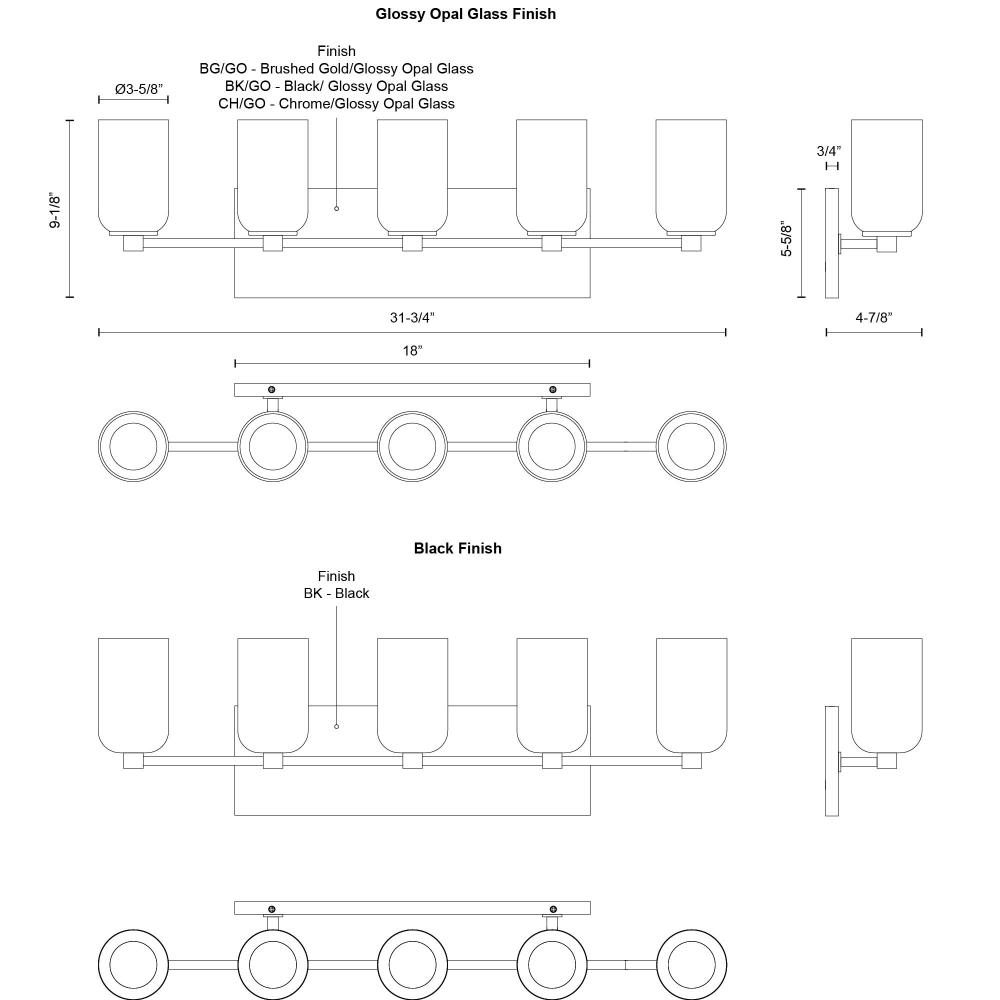Kuzco Lighting Inc VL57732-BG/GO - Nola 31-in Brushed Gold/Glossy Opal Glass Socket Vanity Light