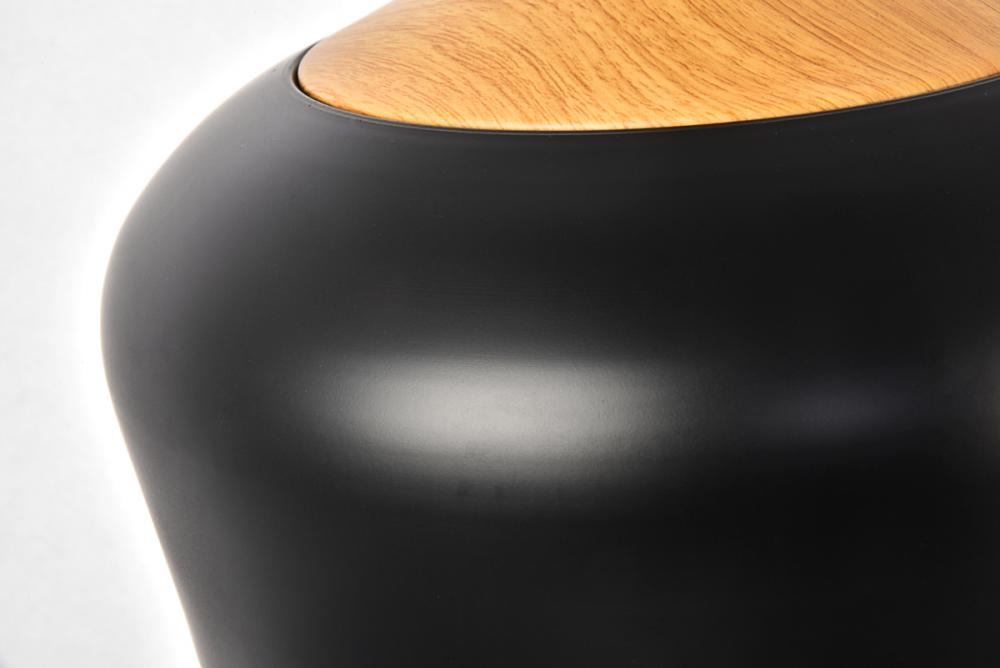 Set the right mood in a kitchen, office, or bedroom with Nora collection hanging lights. Sleek teardrop shaped or larger chalice-shaped aluminum shades come in a sexy matte-black finish; larger lamps feature a wood detail. Contrasting white finish on the inside of the shade gives these pendant lamps just the right amount of attitude.