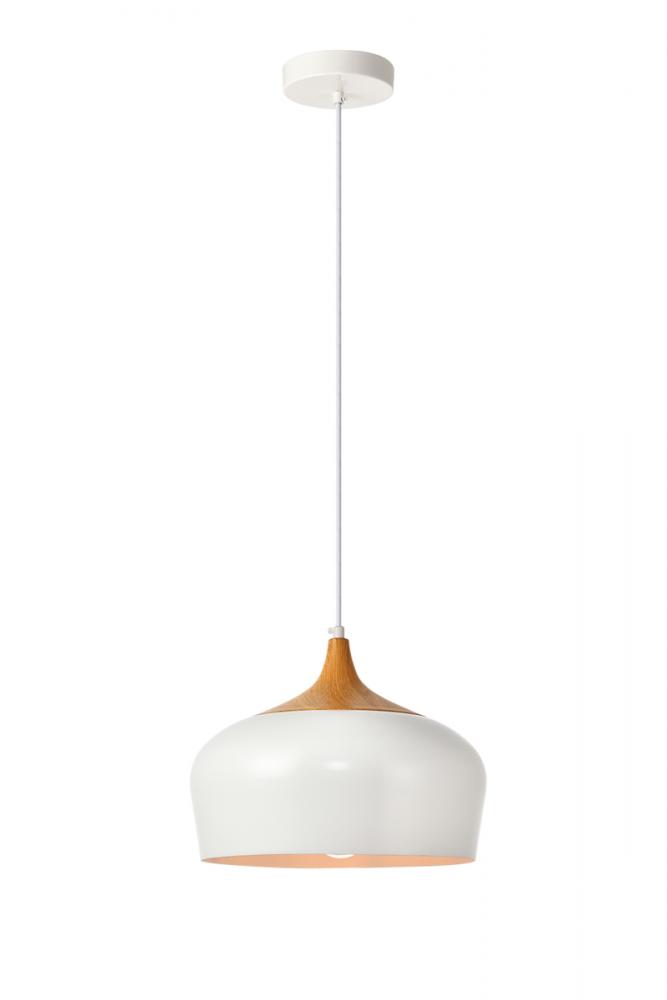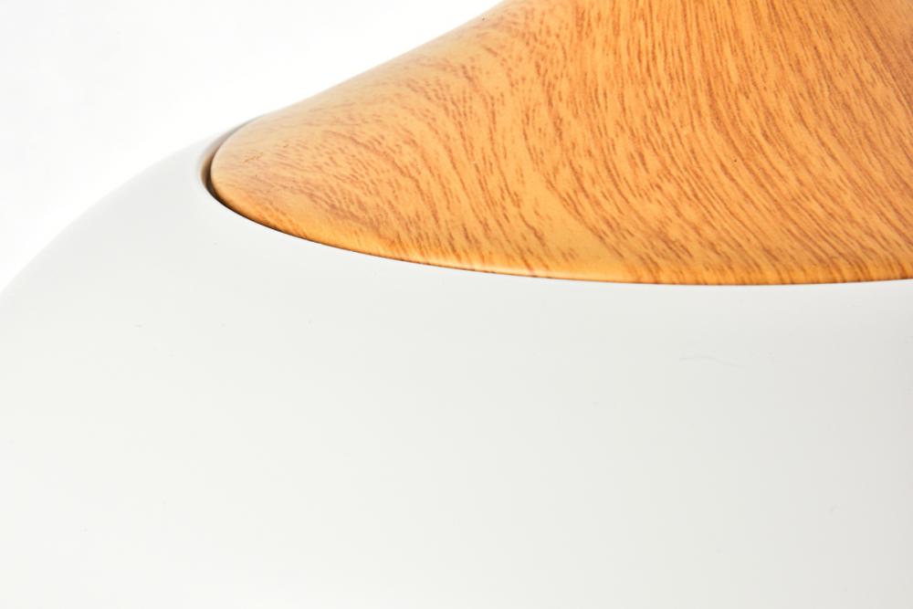 Set the right mood in a kitchen, office, or bedroom with Nora collection hanging lights. Sleek teardrop shaped or larger chalice-shaped aluminum shades come in a smooth frosted white finish; larger lamps feature a wood detail. Contrasting white finish on the inside of the shade gives these pendant lamps just the right amount of attitude.