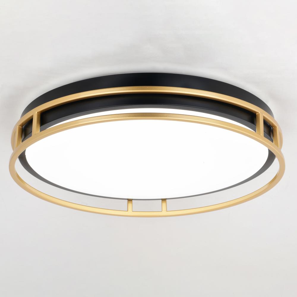 The Northgate collection blends elegant design with rich finishes for an effortless high-end look. The satin gold rings frame a matte black drum which houses a frosted white shade. The integrated LED light features selectable color temperatures of 3000K, 4000K, and 5000K to create your preferred environment for relaxing or working. This flush mount ceiling light works well in bedrooms, offices, hallways, and foyers.
