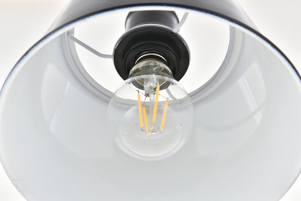 Drum shaped black finish metal shade with white finish interior