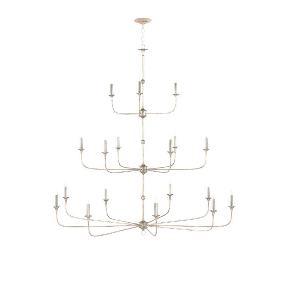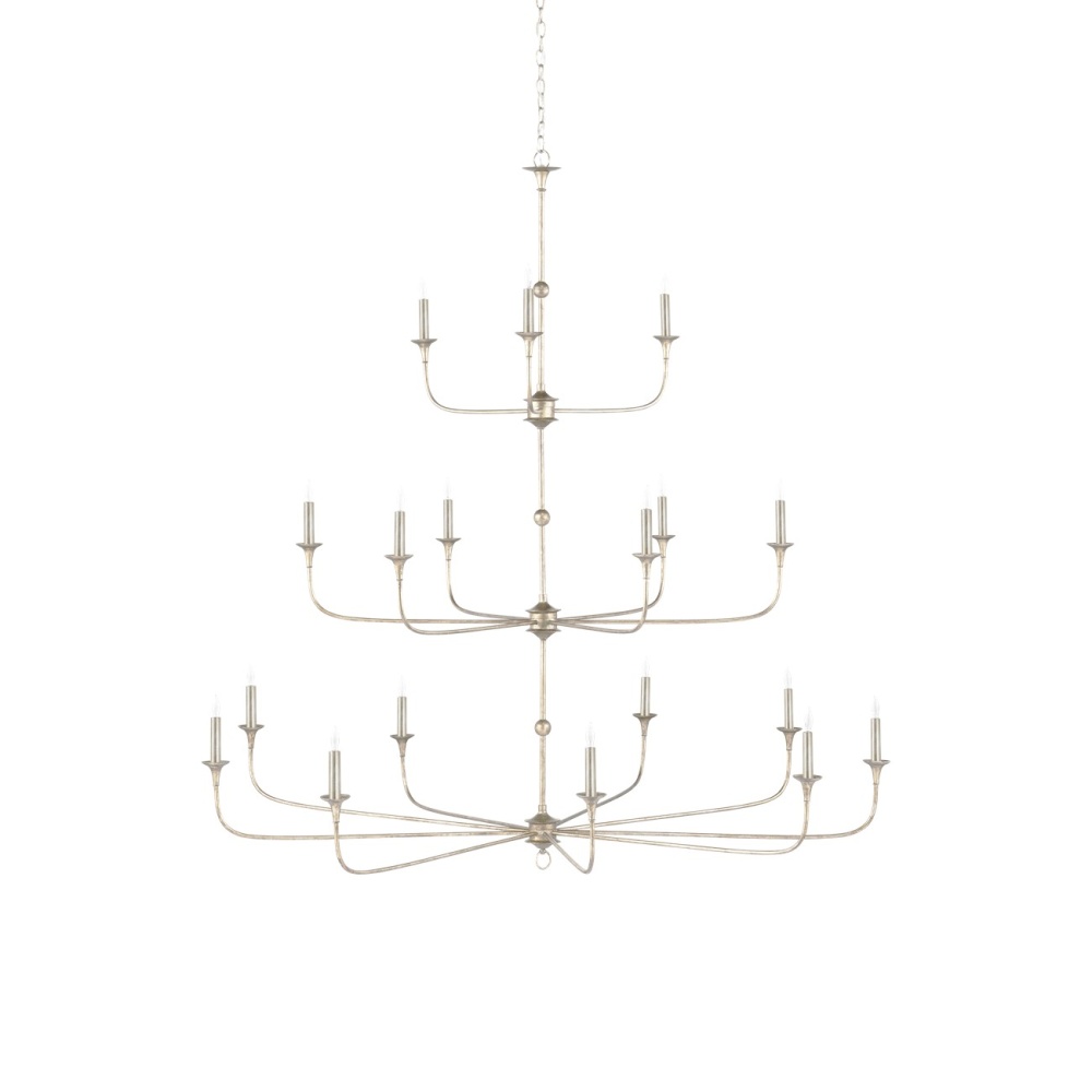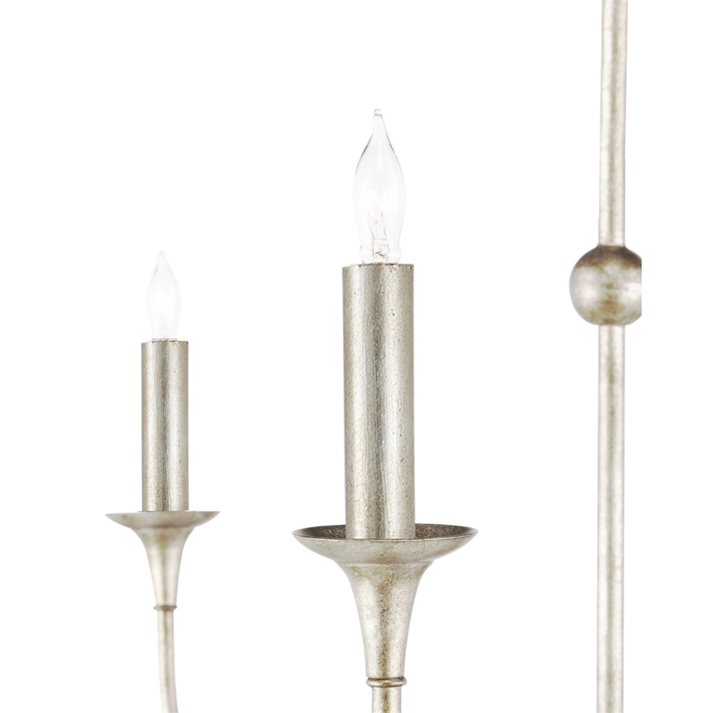 The arms of the Nottaway Grande Champagne Chandelier stretch gracefully from petite cogs that rest at three points on its long, thin stem, the bottom one ornamented with a dainty ring. Though the silver chandelier has minimalist lines, there is a sweeping fluidity to its profile that makes it a natural choice for large tall foyers or any room with high ceilings. The finish on the wrought iron frame brings textural interest to this dimmable 18-light fixture. Adjustable from 70" to 138" with use of included chain/rod kit/cable. If your space calls for a longer drop, additional chain/rods/cable is available for purchase.