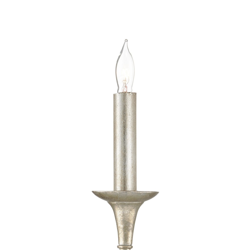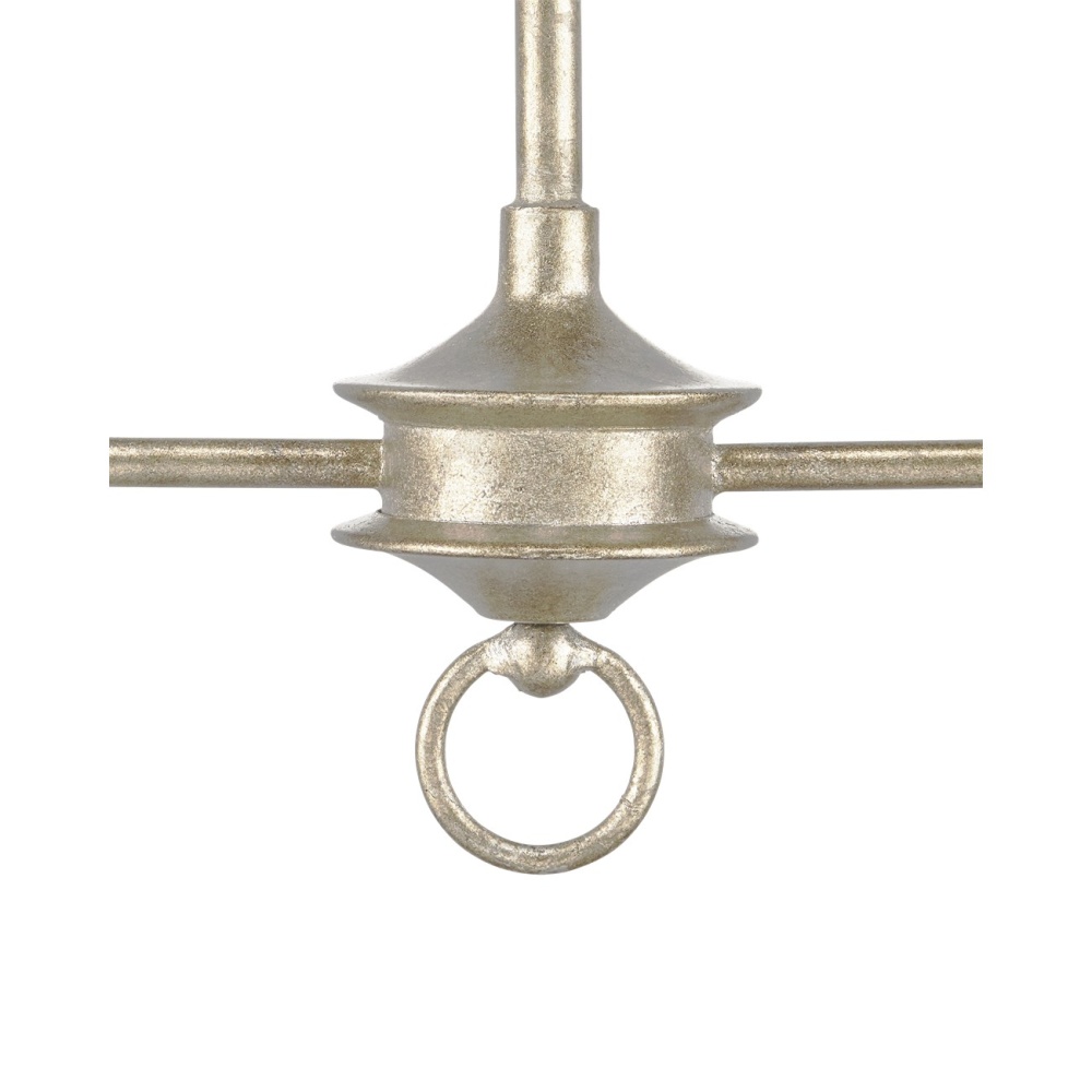 The arms of the Nottaway Linear Champagne Chandelier stretch gracefully from a petite cog at the bottom of its long, thin stem, which is ornamented with a dainty ring. Though the silver chandelier has minimalist lines, there is a sweeping fluidity to its profile that makes it a natural choice for above kitchen islands and bars or long dining room tables. The finish on the wrought iron frame brings textural interest to this dimmable two-light fixture. Adjustable from 23.25" to 65.25" with use of included chain/rod kit/cable. If your space calls for a longer drop, additional chain/rods/cable is available for purchase.