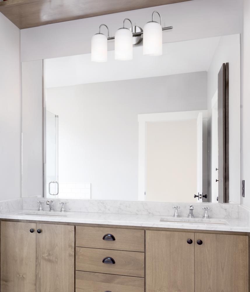 Enhance your vanity area with the sophisticated design of NOVALEE's 3 Light Vanity fixture. Featuring Flat Opal Glass shades and a Brushed Nickel finish, NOVALEE adds a touch of elegance to any bathroom decor. The 60W Type A bulbs offer ample illumination, while the Easy Connect feature ensures hassle-free installation. With dimensions of 22 inches in width, 9.75 inches in height, and 6.5 inches in depth, NOVALEE is the perfect combination of style and functionality for your vanity space.