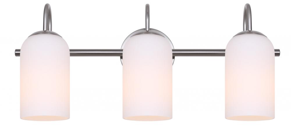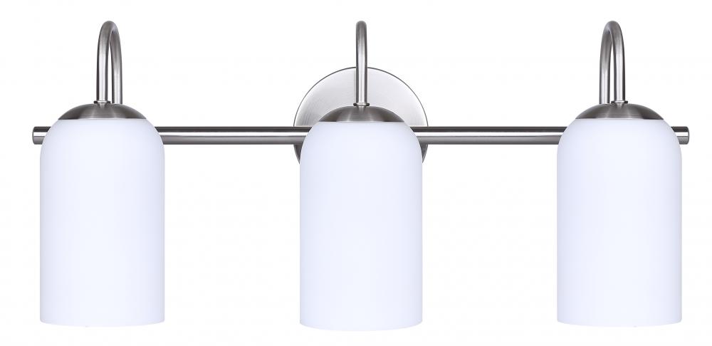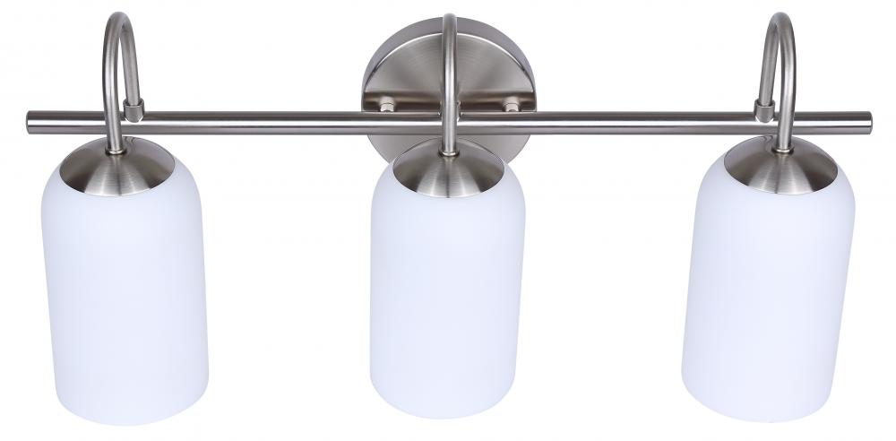 NOVALEE 22 in. 3 Light Brushed Nickel Vanity with White Glass Shade