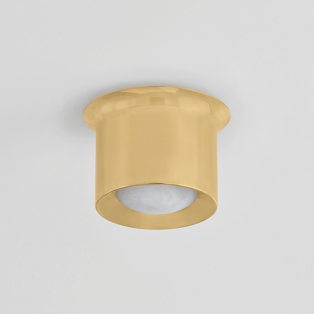 A sleek flush mount with unadorned metalwork, Noxon celebrates the beauty of simplicity. Situated within the metal frame, the matte cloud glass shade washes light around the reflector. with a gentle swell at the canopy, the frame creates the effect of flowing into the ceiling. Noxon is available in a classic Aged Brass or more industrial Distressed Bronze finish.