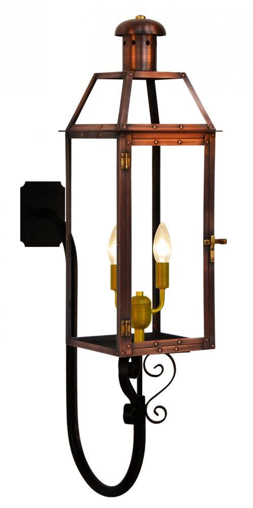 Size 20 Electric Copper Lantern, 2 candelabra base sockets, with Gooseneck with S-Scrolls