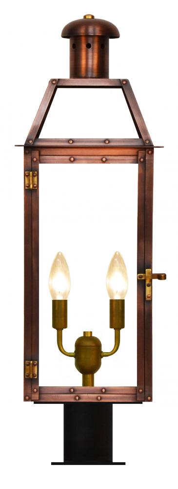 Size 25 Electric Copper Lantern, 2 candelabra base sockets, with Post Fitter, Post Fitter Adaptor