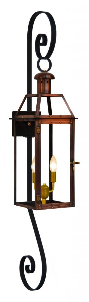 Size 25 Electric Copper Lantern, 2 candelabra base sockets, with Top Scroll, Bottom Scroll