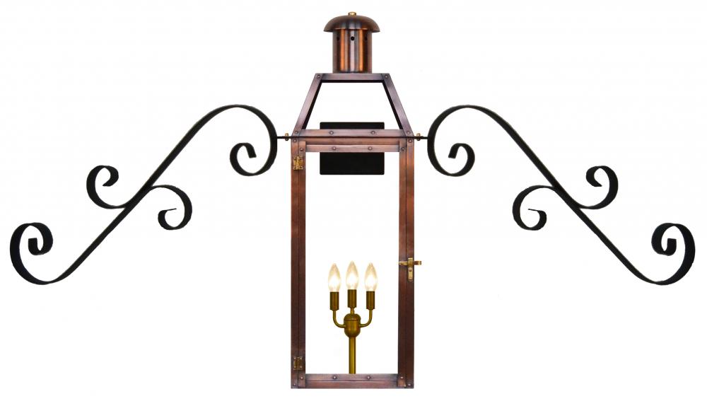 Size 33 Electric Copper Lantern, 3 candelabra base sockets, with Duel Scroll Moustache