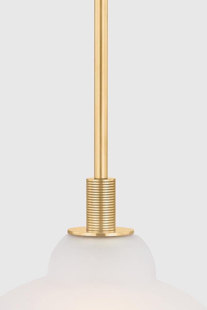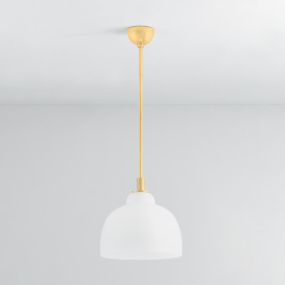 Playing on the layering of glass forms, this elegant pendant concept is a contemporary treasure. The etched outer shade fits seamlessly over an internal glass globe of the same finish, creating a distinctive bubble-like silhouette. Available in two sizes, Oberon floats overhead with serene lightness.