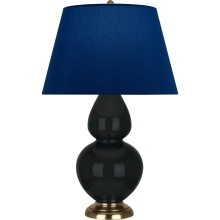 Obsidian Glazed Ceramic with Antique Natural Brass Finished Accents Double Gourd Table Lamp with Pearl Dupioni Fabric Shade - Our Double Gourd collection features a simple but gracefully curving silhouette. Available in a wide array of vibrant colors and several different base finishes.
