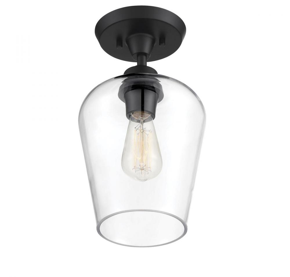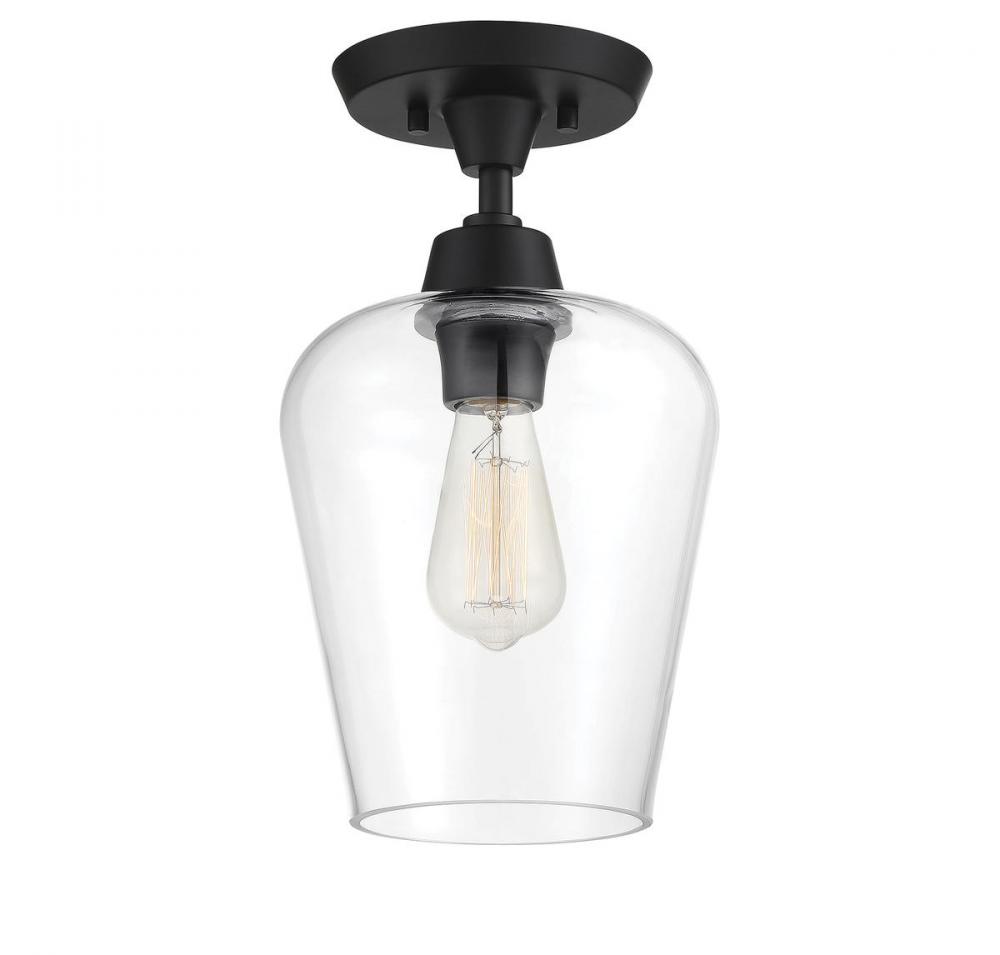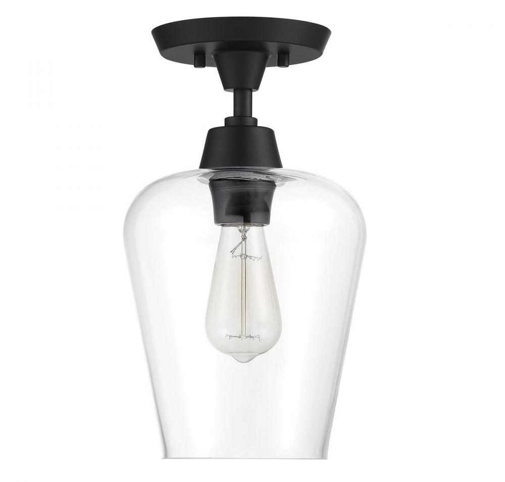 Find close-to-ceiling light with understated elegance when you get the Savoy House Octave 1-light ceiling semi-flush mount. It features a shade of curved glass, minimal detailing and a matte black finish. Semi-flush mounts can be used on the ceiling of pretty much any interior room, including foyers, hallways, stairways, closets, bathrooms, bedrooms, kitchens and more! Bulb not included. Try using a stylized bulb like Edison or tubular for a different look! The matte black finish can be paired with black hardware or mixed with hardware in other finishes. Try the Octave with glam, transitional or contemporary style rooms for a chic look. When you choose a Savoy House lighting fixture, you can be certain you've selected a piece that will withstand the test of time.