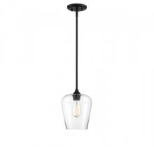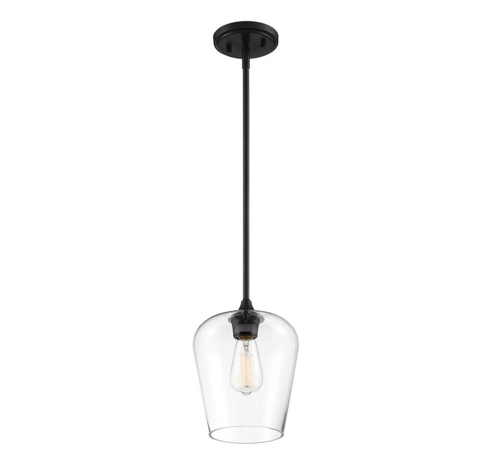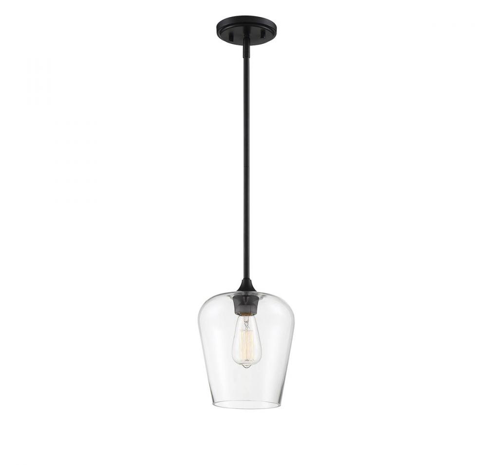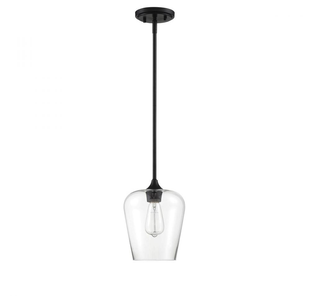In the Savoy House Octave 1-light pendant, bold black lines and a streamlined silhouette create an air of elegance and sophistication. The matte black finish and clear glass shade go with absolutely everything. If you have traditional, contemporary, transitional, vintage, modern farmhouse, industrial-inspired or an eclectic mix in your home, you’ll love the way this Octave pendant will stylishly fit right in. This 8" wide by 10.5" high fixture connects with downrods to adjust hanging height. A standard-size bulb will provide lovely illumination in your space, whether in your dining area, living room, kitchen, entryway, bedroom, bathroom or family room.