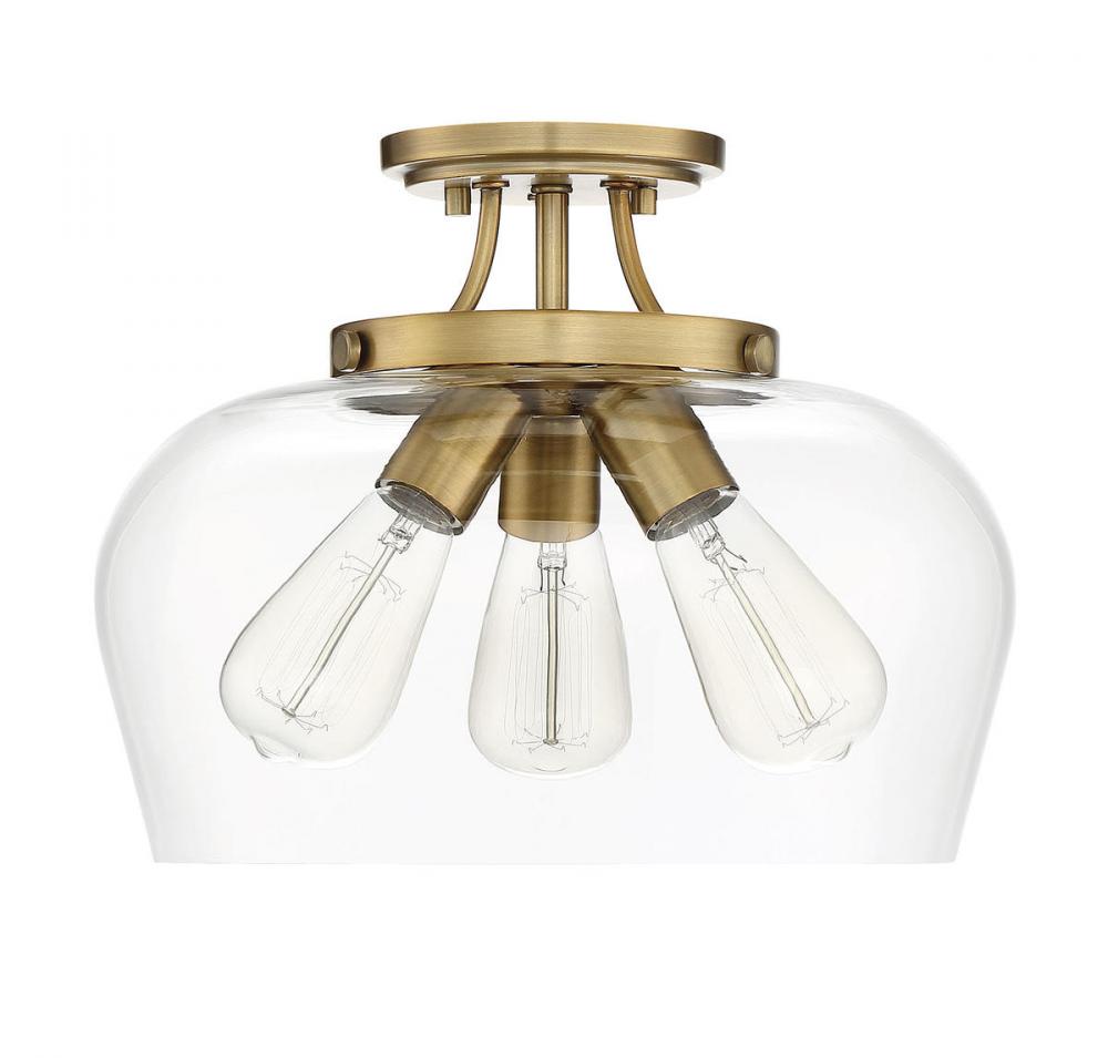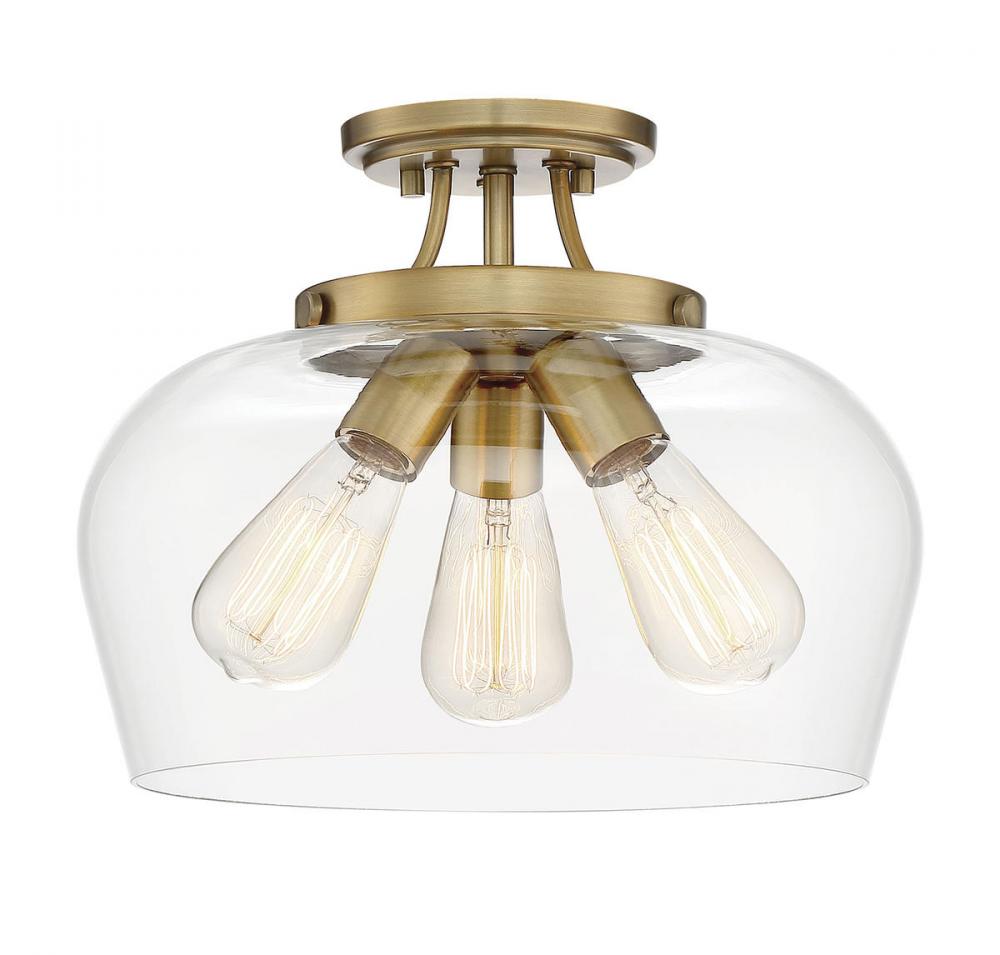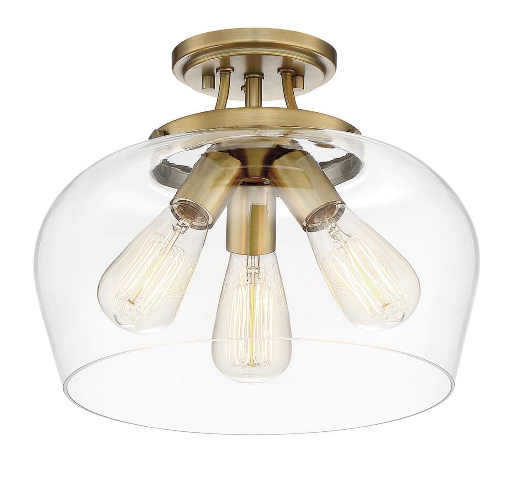 Find close-to-ceiling light with understated elegance when you get the Savoy House Octave 3-light ceiling semi-flush mount. It features a shade of curved glass, minimal detailing and a warm brass finish. Semi-flush mounts can be used on the ceiling of pretty much any interior room, including foyers, hallways, stairways, closets, bathrooms, bedrooms, kitchens and more! Bulbs not included. Try using stylized bulbs like Edison or tubular for a different look! The warm brass finish can be paired with brass hardware or mixed with hardware in other finishes. Try the Octave with glam, transitional or contemporary style rooms for a chic look. When you choose a Savoy House lighting fixture, you can be certain you've selected a piece that will withstand the test of time.