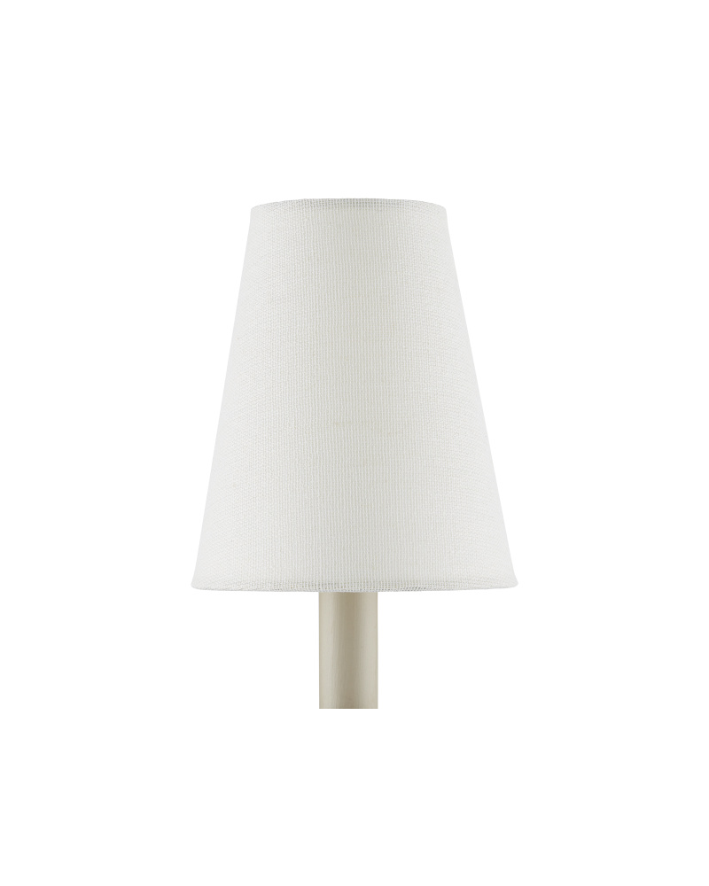 Petite shades made of a finely woven grasscloth bring added warmth to a space. Due to the natural material's inherent texture, there is a knotty richness to their surfaces, though the lighter hues are so delicate they read like linen. in fact, the shades for chandeliers and wall sconces in this collection are of the finest weaves made by hand, evidenced by the tiny telltale knots along the surface that prove they are the ultimate definition of artisanal. The shades come in three different weaves, the one with the most texture trimmed in thin bands of cloth and the finer ones culminating with a rolled edge. Both designs exhibit a tailored feel, as you can see from this fine off white version of the tapered shade. Top Diameter: 3" Bottom Diameter: 5" Height: 6"