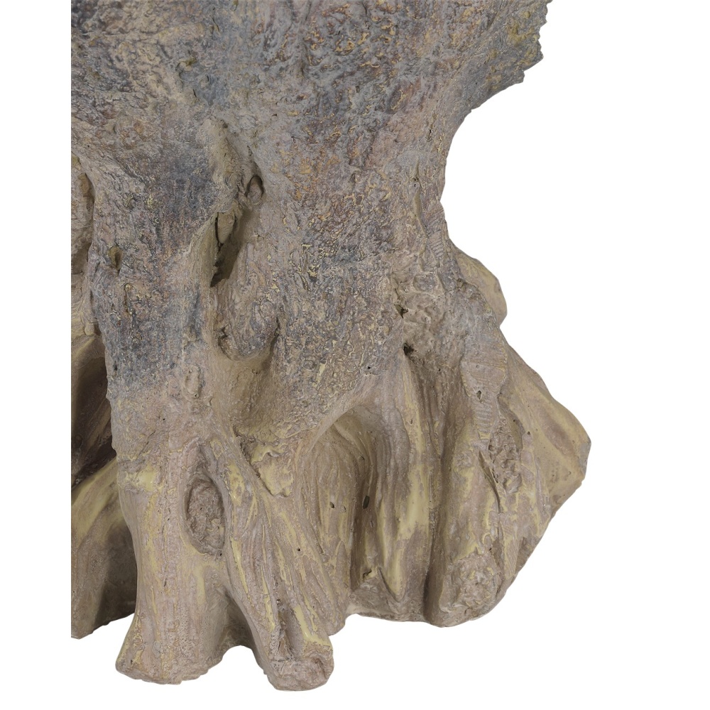 In the tradition of faux bois, the Old Growth Small Planter is incredibly lifelike. Crafted from fiber cement in a dappled finish, the stump-shaped brown planter looks aged like an antique would had it been ornamenting a garden for decades. The way the gnarled roots culminate at the bottom is particularly convincing. This plant pot has a drain hole.