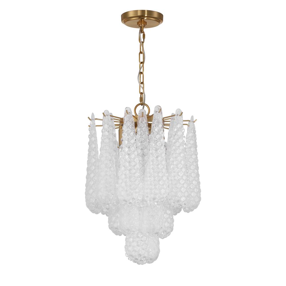 Inspired by vintage and mid-century design, the Ollie collection features hand-blown glass with intricate raised details. The beautiful hues of this collection shift subtly depending on whether the light is on or off, creating a dynamic and artistic effect. This unique piece blends mid-20th-century charm with a modern touch, making it a true statement fixture.