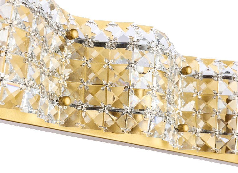 The Ollie Collection of wall lamps is a testament to the timeless beauty of crystals and lights. The gentle undulating clear crystal veil masks the coy lights that allows its lights to shine from within. The illumination creates a brilliant yet subtle glamour, and provides an ambience of alluring beauty. Available in a brass or chrome finish, this wall lamp can adorn any room in need of radiant elegance (light bulbs not included).