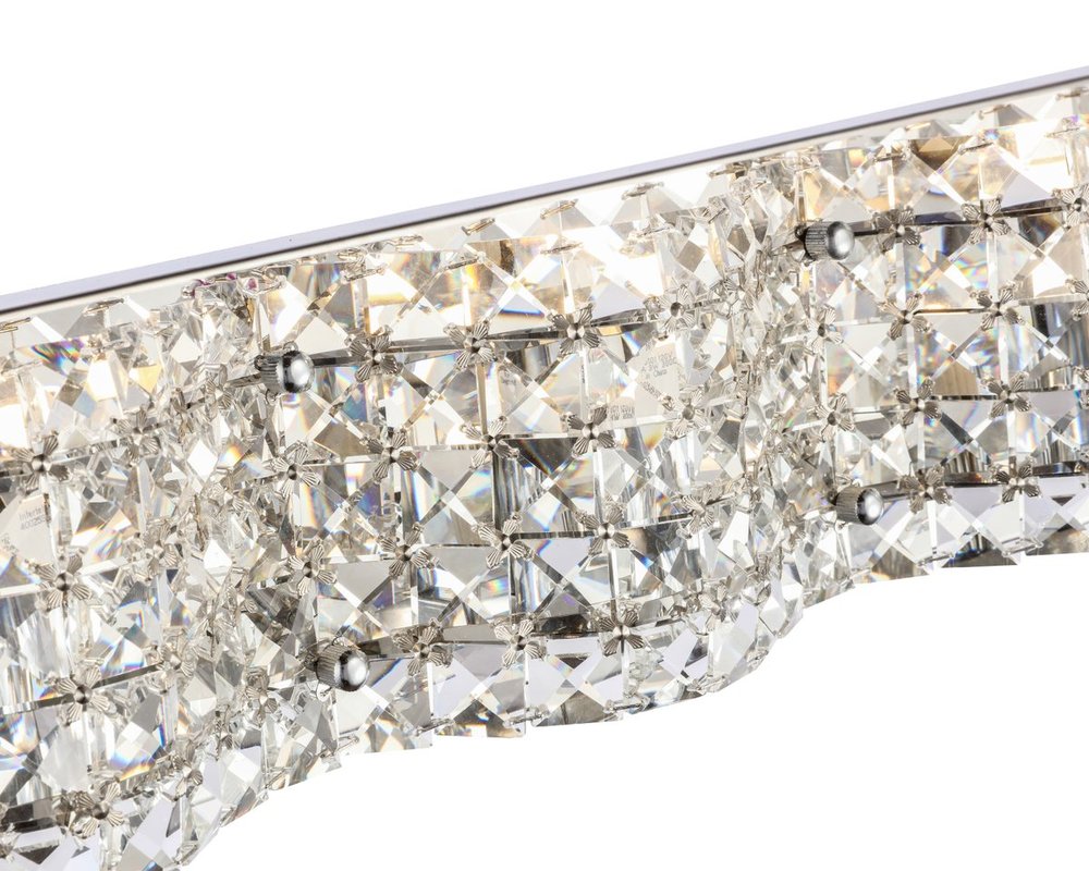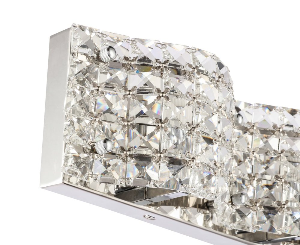 The Ollie Collection of wall lamps is a testament to the timeless beauty of crystals and lights. The gentle undulating clear crystal veil masks the coy lights that allows its lights to shine from within. The illumination creates a brilliant yet subtle glamour, and provides an ambience of alluring beauty. Available in a brass or chrome finish, this wall lamp can adorn any room in need of radiant elegance (light bulbs not included).