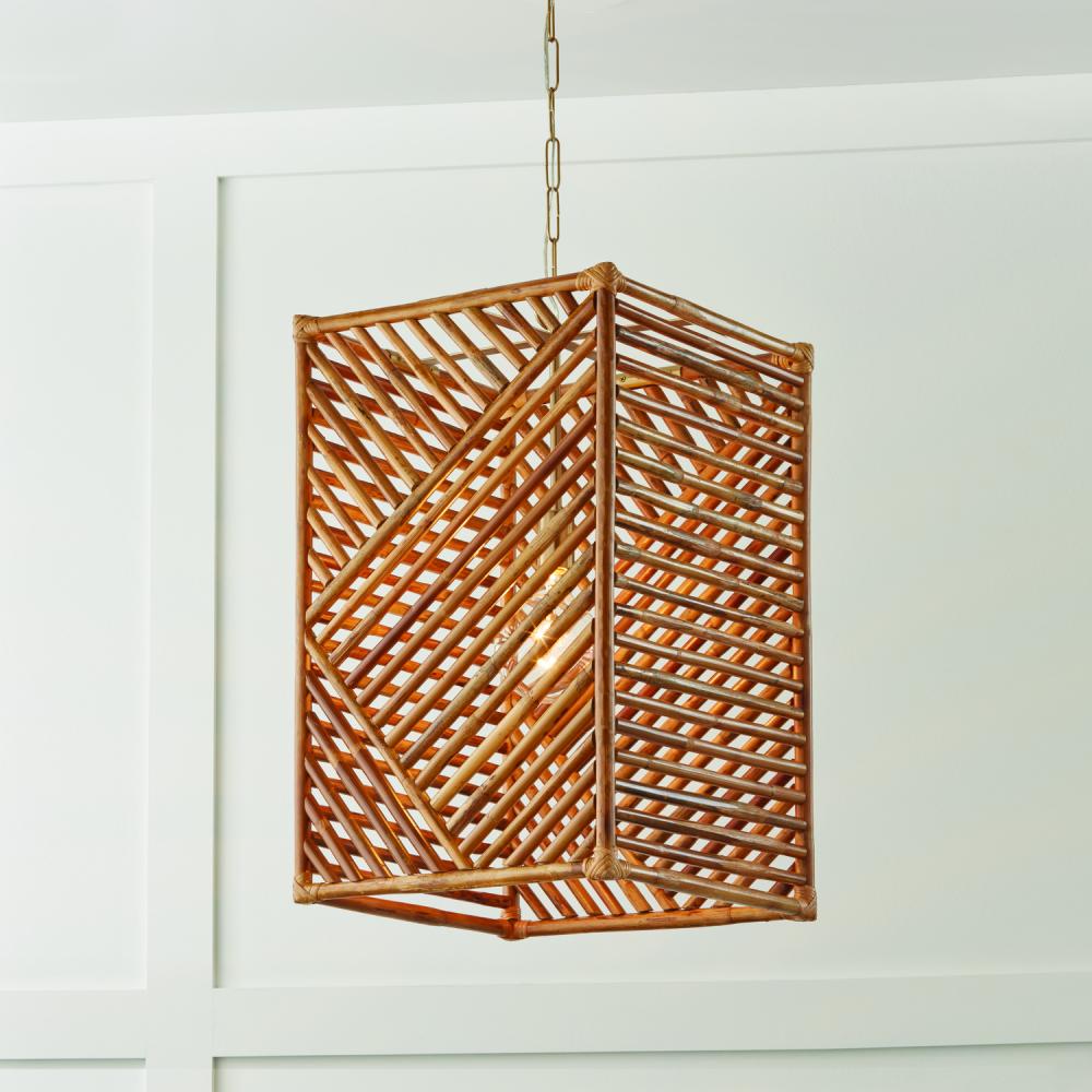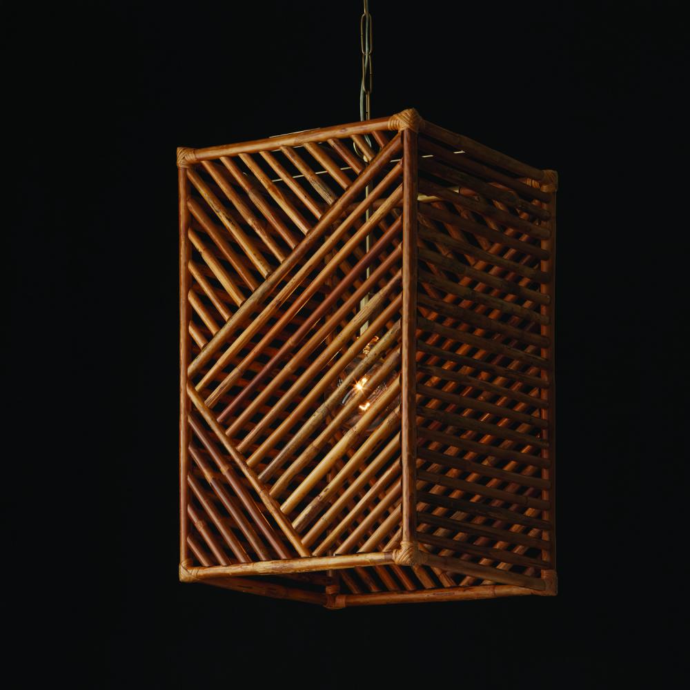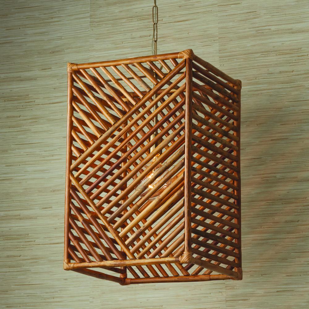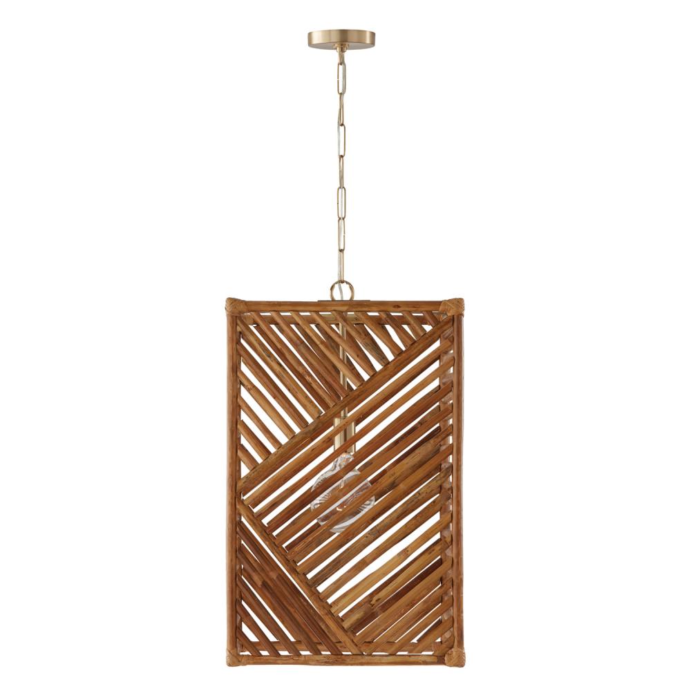 17"W x 28"H 1-Light Foyer Pendant in Matte Brass with Artisan Crafted Natural Bamboo