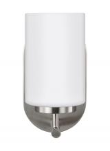 The Oslo one light wall sconce in brushed nickel provides abundant light for your bath vanity, while adding a layer of today's style to your interior design. The Oslo lighting collection by is a sleek design, with smooth and clean lines. The Opal Etched glass adds to this collection's contemporary and minimalist character. Offered in Chrome, Brushed Nickel, Burnt Sienna and textured Blacksmith finishes, the collection includes nine-, five-, and three-light chandeliers, pendants in four sizes, both flush and semi-flush ceiling fixtures, as well as one-, two-, three- and four-light wall/bath fixtures. Both incandescent lamping and ENERGY STAR-qualified LED lamping are available. All fixtures are California Title 24 compliant.