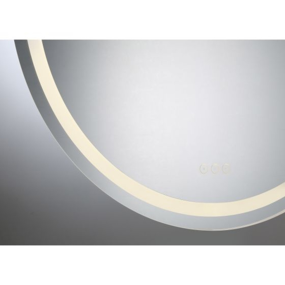 Make every morning brighter with this Savoy House Oneida round front lit LED mirror! Its sleek and beautiful design is loaded with thoughtful, useful features, all controlled by touch. Choose from three different color temperatures - 3000K, 4500K and 6500K - to find the light that is perfect for you. Increase or decrease the brightness using the stepless dimmer. Keep things clear with the defogger, which shuts off automatically after one hour. For convenience, Oneida even remembers and restores the last used illumination setting! This mirror is free from lead and copper, comes with mounting hardware and is backed by a 3-year warranty. Uses 41 watts to deliver 817 lumens at a CRI of 90+. Suitable for damp locations. Oneida is 32" in diameter and extends 1.88" from the wall.