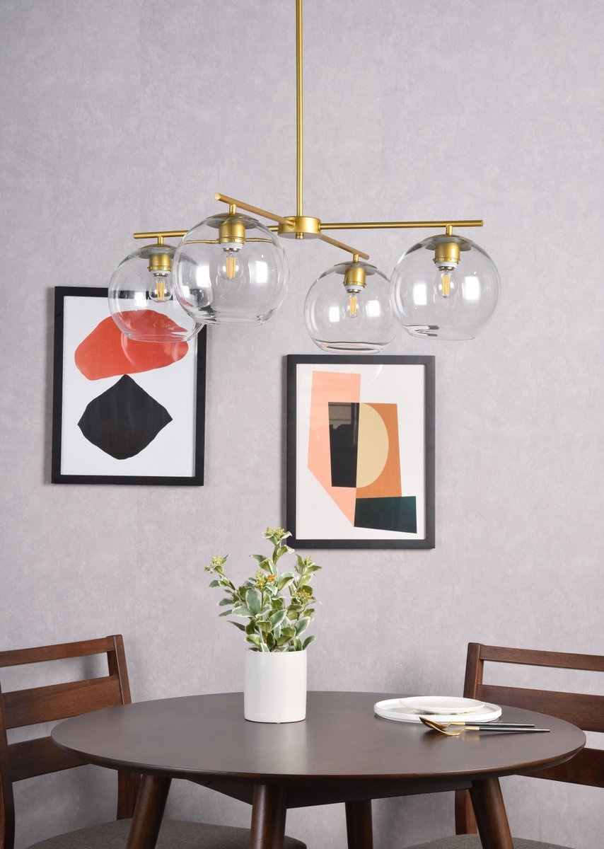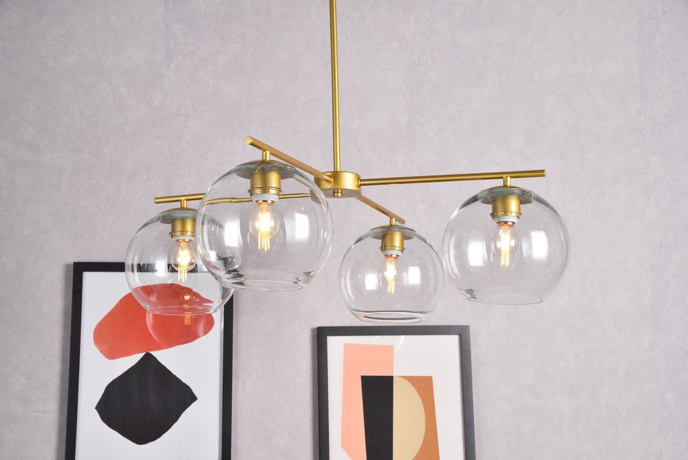 The Opus Collection includes a pendant lamp that gives a bubble effect. With its rounded glass, the ball protects the bulb which lights up and shines through. Place this in anywhere and the fixture will speak for itself. This fixture is dimmable, requires four E26 lamps, and comes in three different finishes--- black, brass, and chrome. Light bulbs not included.