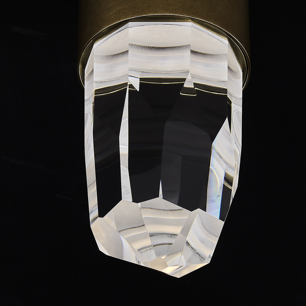 Bring a touch of modern elegance to your space with the faceted crystal Ore fixture. This flexible design can be mounted on both the wall and ceiling, and features a sleek, True Brass finish (062) and a beautifully cut crystal shade. Blending modern styling with timeless sophistication, the large crystal diffuser expertly refracts light, casting a radiant glow and subtle patterns throughout the room. Perfect for hallways, bathrooms, bedrooms, or as an accent in stylish living spaces, Ore offers both decorative flair and functional illumination. The minimalist yet luxurious design makes it a versatile choice for modern and transitional interiors alike.