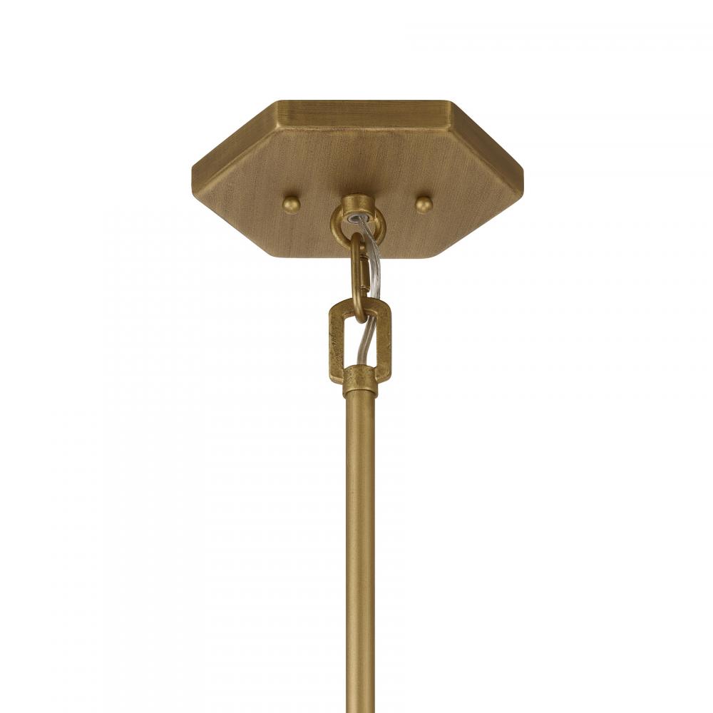Art Deco style gets an organic twist in the Savoy House Orleans 6-light pendant. Panes of natural alabaster stone obscure the lights for a bright yet comfortable glow and are held in a jewelry-like frame that is finished in Distressed Gold. Orleans is 15.5" in height and 24.28" in width. It uses 6 candelabra size bulbs of up to 60 watts each (bulbs not included). Comes with four 12" downrods and one 6" downrod.
