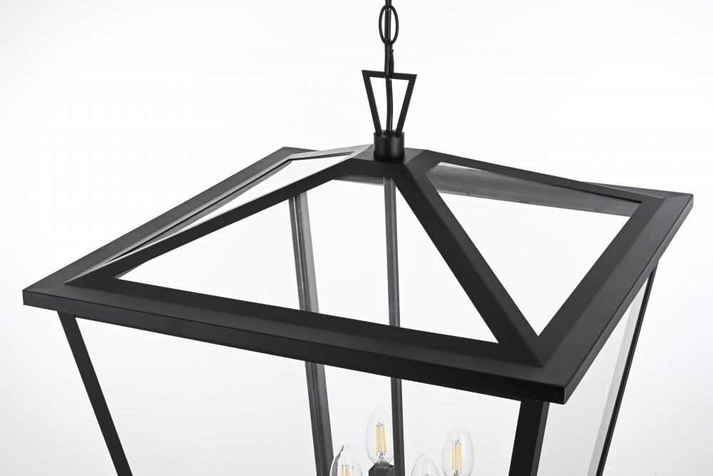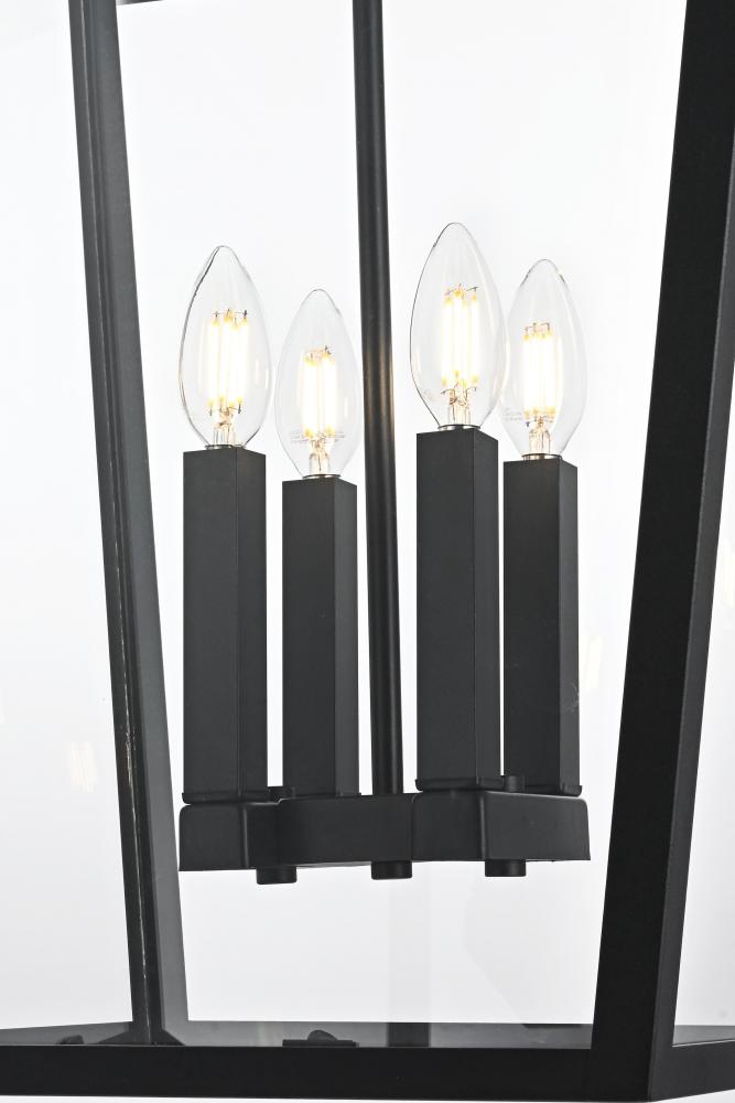 The clear, tapered glass panels add a refined touch while allowing for maximum light diffusion, creating a warm and welcoming glow.