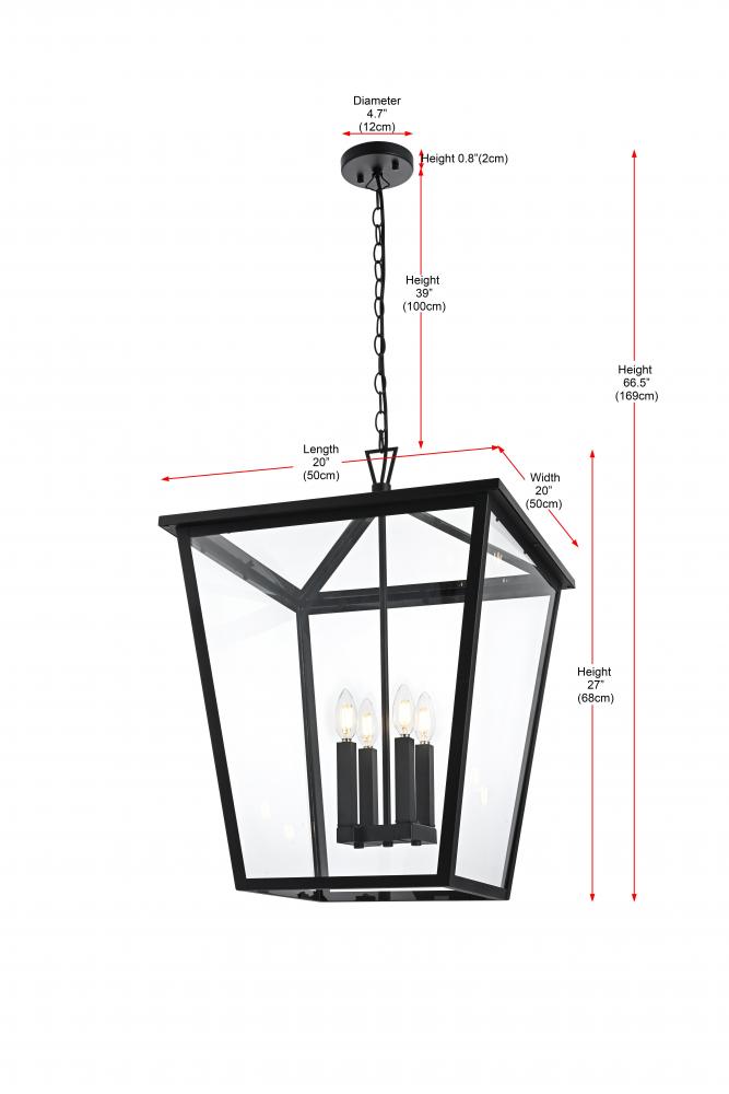 Introduce a classic and timeless glow to your outdoor space with this stunning lantern-style pendant light. Featuring a classic tapered frame and sophisticated matte black finish, this pendant light brings a refined, versatile aesthetic that enhances any home exterior, whether traditional or contemporary. with dual candelabra bulb holders, this pendant adds a vintage touch while ensuring bright, effective illumination. The tapered glass panels allow for maximum light output, creating a warm and inviting ambiance. Built from weather-resistant metal and ETL certified for wet locations, this pendant is crafted to withstand the elements while maintaining its beauty. Its adjustable chain allows for easy height customization, making it suitable for porches, patios, or entryways. Illuminate your home in style with this beautifully crafted outdoor pendant light.