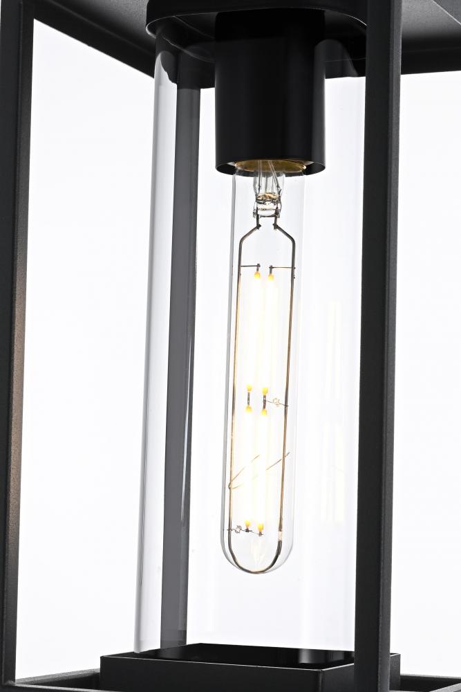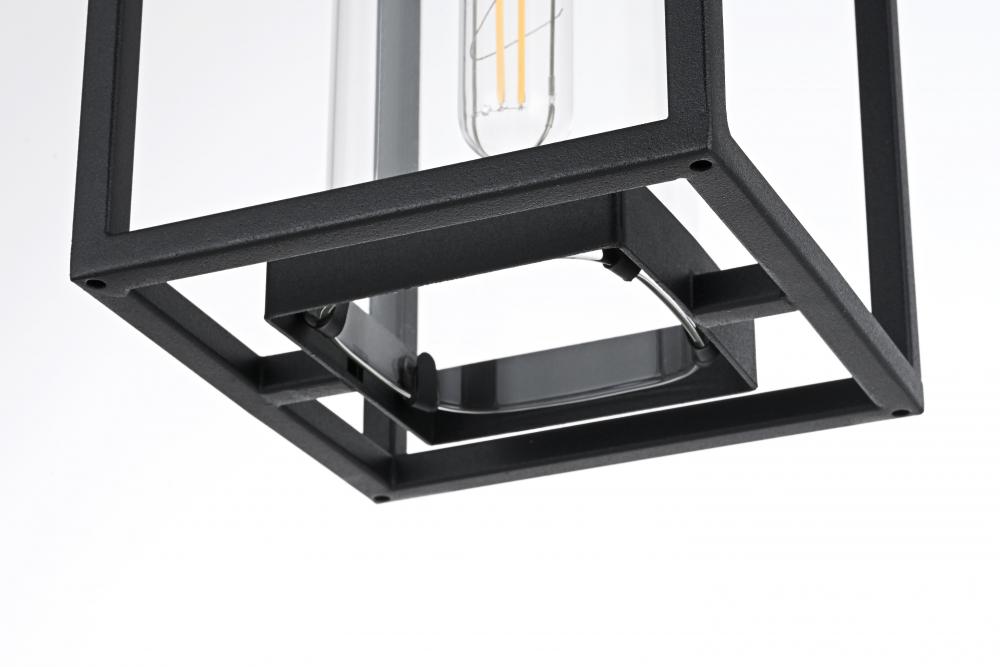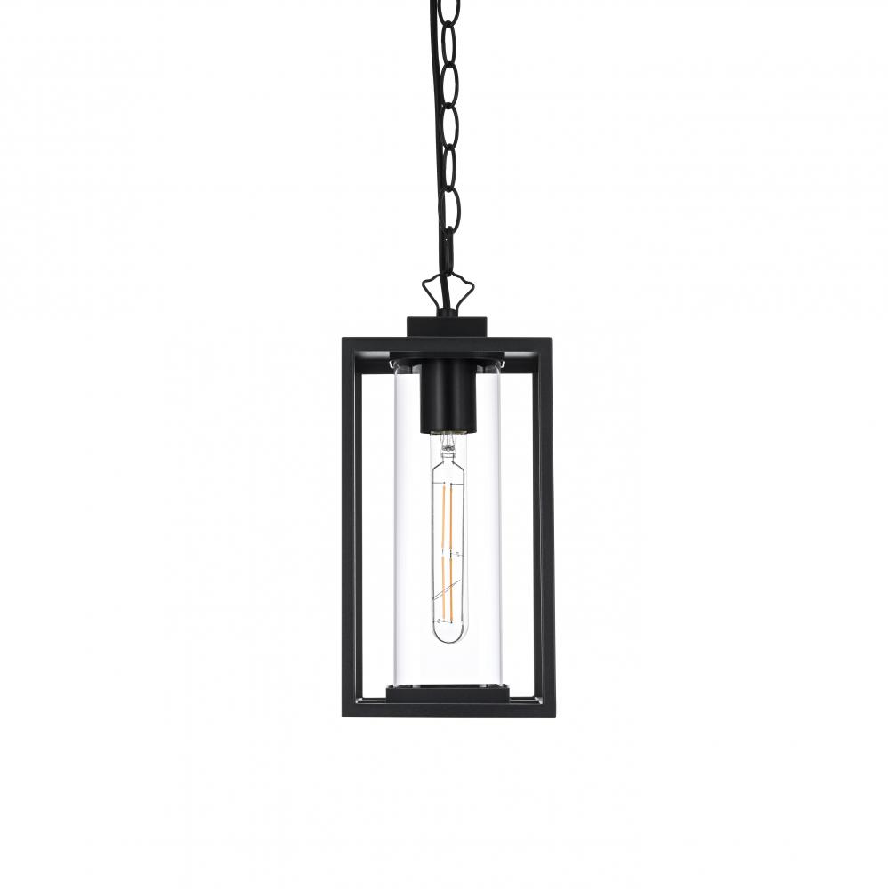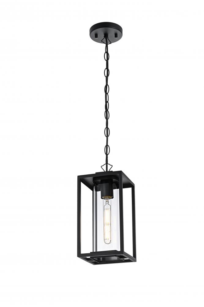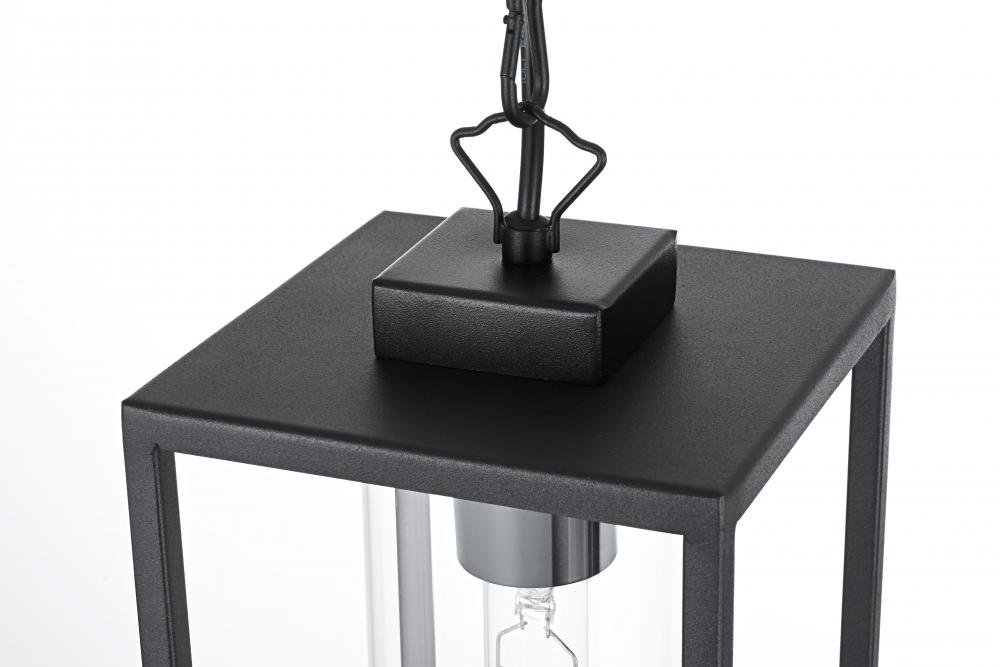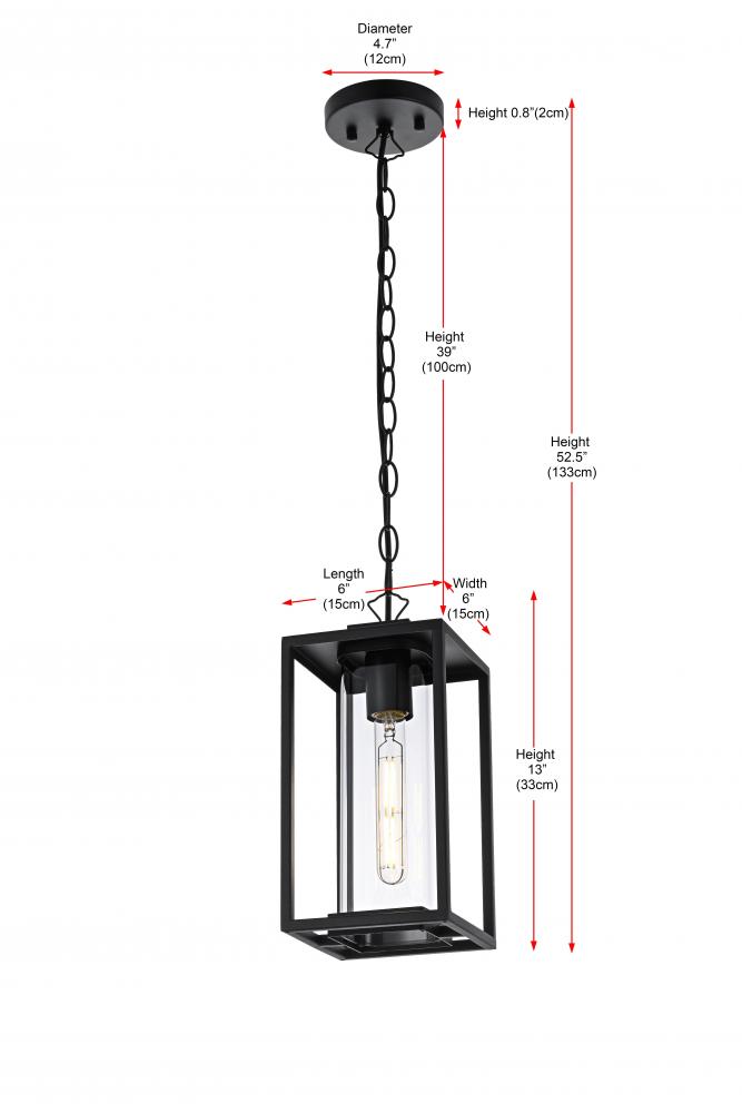 Add a touch of modern elegance to your outdoor living space with this stunning pendant light. Featuring a minimalist rectangular frame with clear glass panels, this pendant showcases a sleek and sophisticated look perfect for any outdoor decor style. The matte black finish enhances its contemporary appeal, while the open design makes bulb changes simple and adds a charming visual effect. with its adjustable chain, you can easily customize the height to fit your space, whether for a porch, patio, or entryway. Constructed from high-quality metal and ETL certified for wet locations, this outdoor pendant is not only stylish but also durable and dependable. Illuminate your home's exterior with this versatile and timeless light fixture, and create a warm, inviting ambiance that enhances curb appeal.