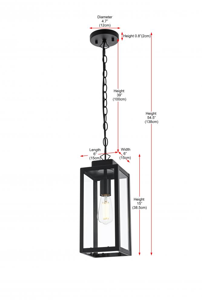 Add a modern yet timeless accent to your outdoor living space with this sleek rectangular pendant light. Featuring an elegant matte black finish and framed by clear glass panels, this pendant provides a bright, welcoming glow perfect for illuminating your porch, patio, or entryway. The visible bulb design lets you add a personal touch by showcasing a stylish filament bulb, enhancing the fixture’s overall aesthetic. Built with durable, weather-resistant metal and certified for wet locations, this pendant is ideal for a range of outdoor conditions. The adjustable chain allows you to customize the height, making it versatile for any space. Elevate your home’s curb appeal with this elegant outdoor pendant light that combines style, quality, and functionality.