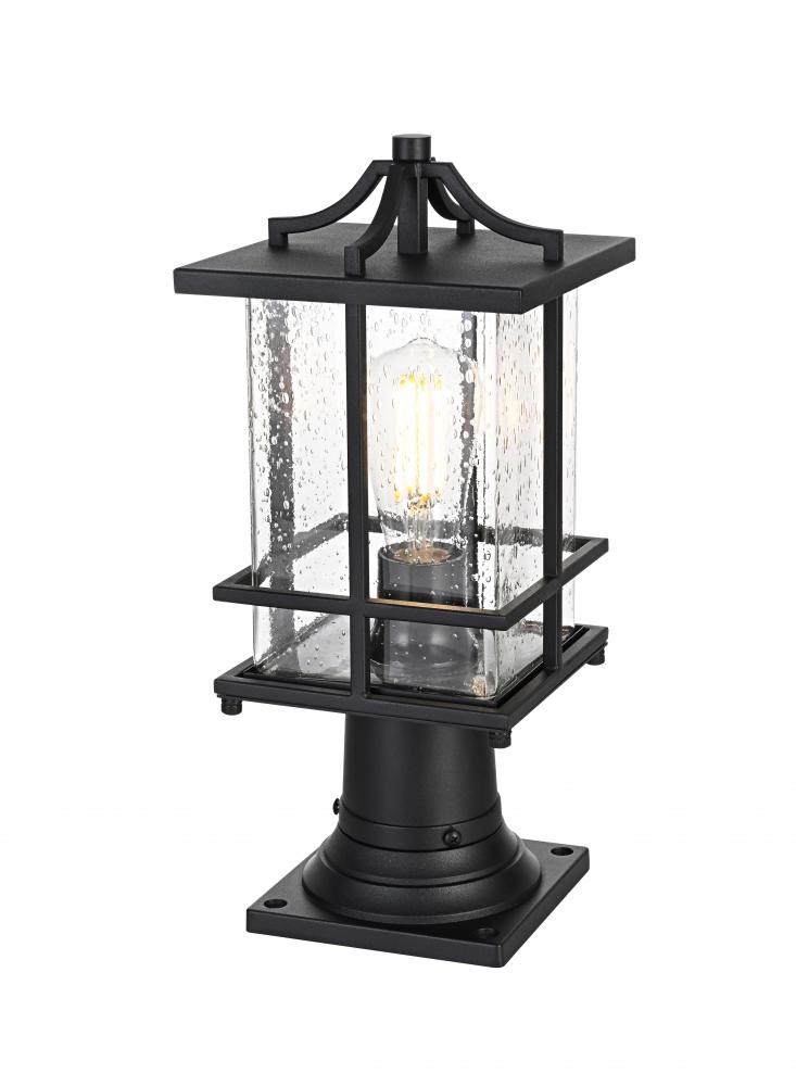 Crafted with an eye-catching blend of iron and clear seeded glass, this outdoor post light adds a modern yet timeless touch to any exterior wall, blending seamlessly with a variety of architectural styles.