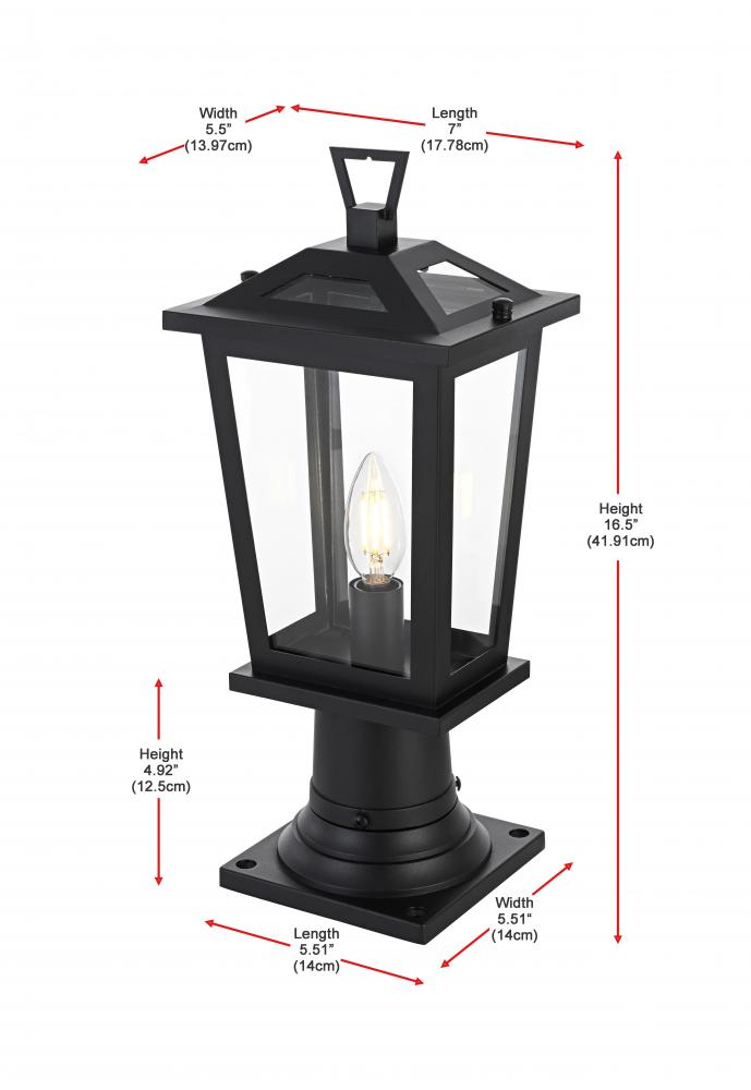 Enhance your outdoor space with this stylish post light that features a striking matte black frame paired with clear glass panels, perfectly showcasing its modern charm. The latern box shape is adorned with a distinctive triangular loop on top, adding a unique architectural touch that seamlessly combines functionality with a bold, sleek aesthetic. The open bottom design allows for easy bulb changes and casts a beautiful downward light, adding a welcoming glow to your entrance or patio area. Crafted from durable iron with a clean, modern style, this post light is perfect for those who appreciate a blend of simplicity and contemporary design. The clear glass ensures maximum light output, enhancing visibility while emphasizing the beautiful shape of the bulb inside. The E12 socket offers versatility for different bulb styles, allowing you to easily customize the ambiance of your outdoor area.