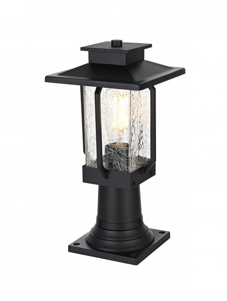 Transform your home's exterior with this charming craftsman-style wall post light. Built with a durable iron frame and finished in a sleek matte black, this light adds character to your entryways, patios, or porches. The crackle glass panels create a unique, diffused lighting effect, giving your home a warm and welcoming glow. Designed to endure outdoor conditions, this post light is both a stylish and practical addition to your outdoor space, ensuring a well-lit, safe, and attractive home environment.