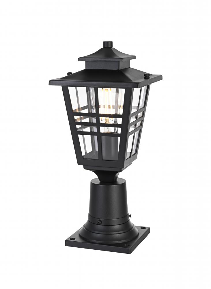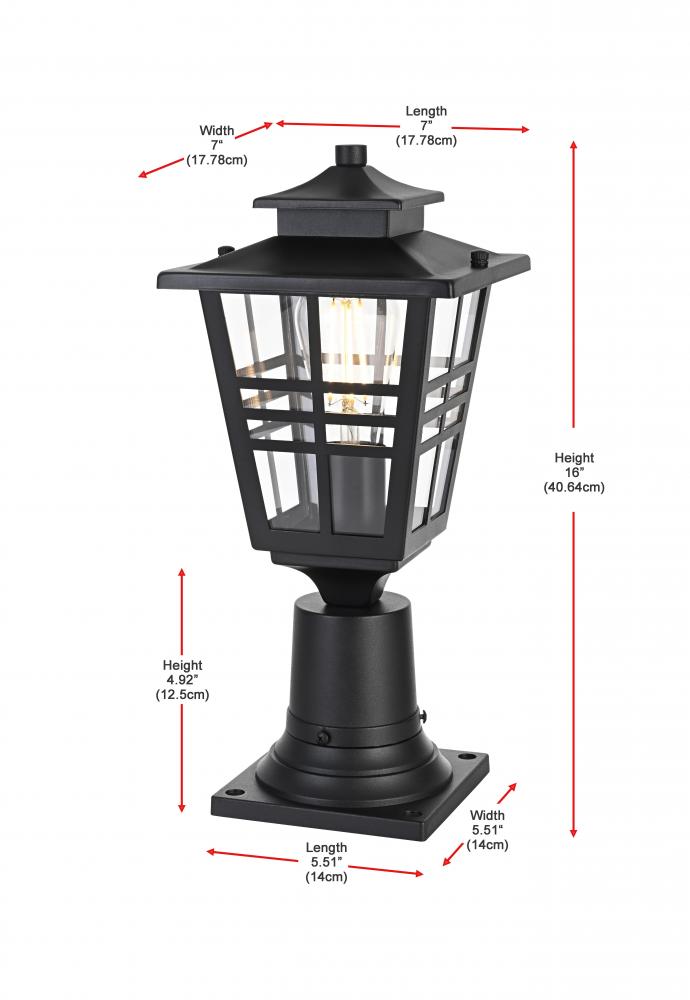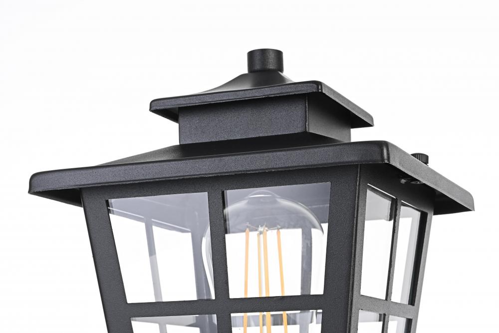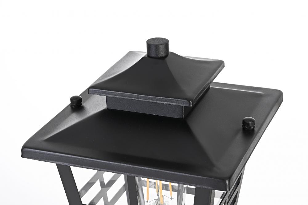 Add a welcoming glow to your outdoor spaces with this timeless lantern-style post light. Inspired by traditional craftsman designs, this light features a durable iron frame paired with clear glass panels to provide excellent illumination. The matte black finish complements any exterior decor, adding a stylish yet functional touch to your entryway, patio, or garage. The grid detailing on the clear glass panels enhances the overall aesthetic while delivering a bright and comforting glow. Built to withstand outdoor elements, this light is both practical and visually appealing, perfect for illuminating your home's exterior with style and efficiency.