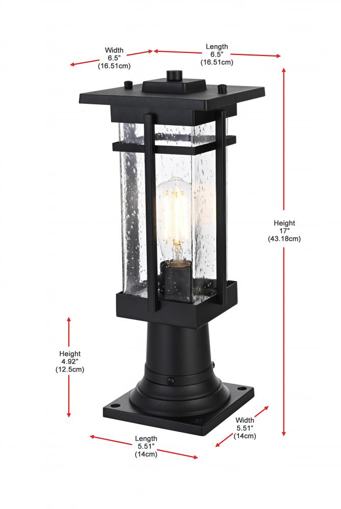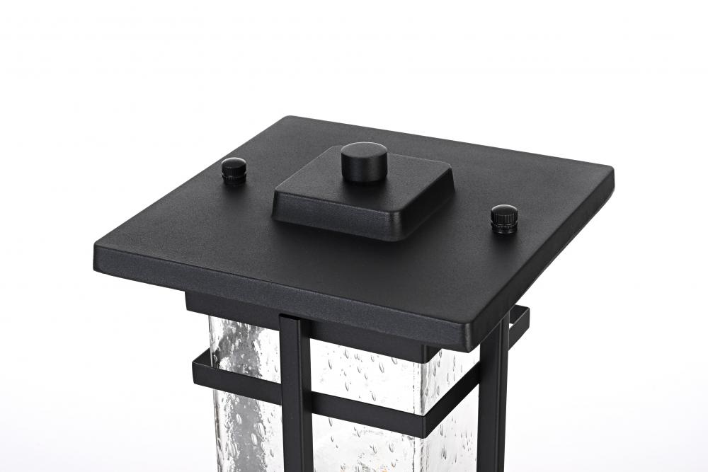 This outdoor post light is a perfect blend of durability and style, making it a standout piece for any exterior wall. Crafted from high-quality iron and clear seeded glass, the light exhibits a timeless lantern silhouette with crisp lines and an attention to detail that provides a fresh twist on classic outdoor lighting. The iron frame with a sleek black finish adds a robust and contemporary touch, while the clear seeded glass creates a warm and inviting glow, enhancing the overall ambiance of any outdoor space. Featuring an E26 base for versatile bulb options, this light is as functional as it is beautiful.