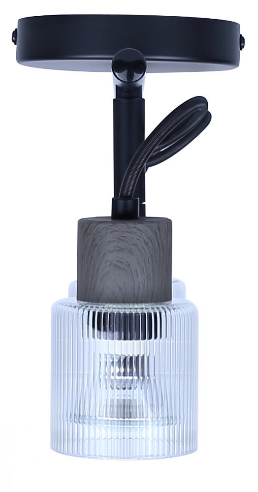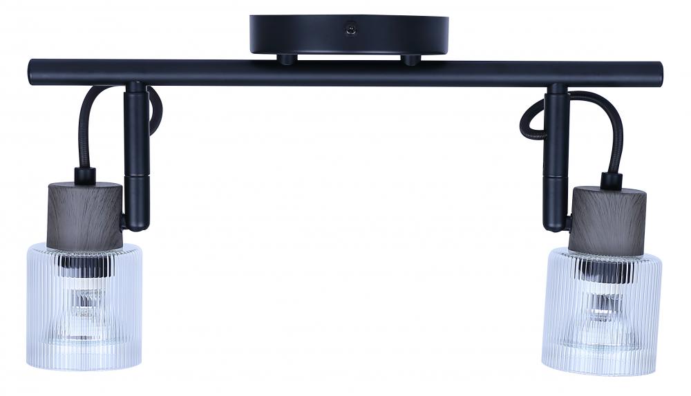 OWEN, IT1198A02BKW10, MBK Color + Faux Wood Color, 2 Lt Track, Clear Ribbed Glass, 50W Type GU10, 15inch W x 8.25inch H x 4.75inch D, Easy Connect Included