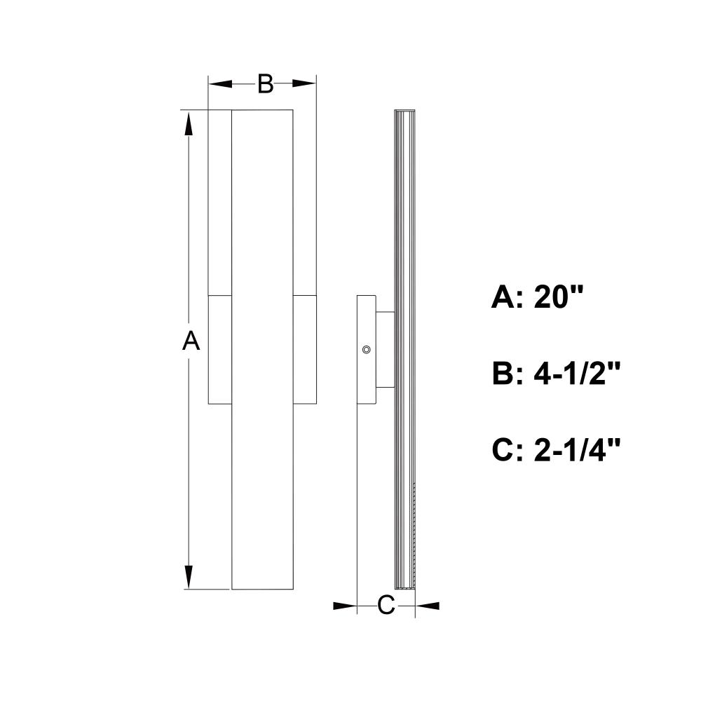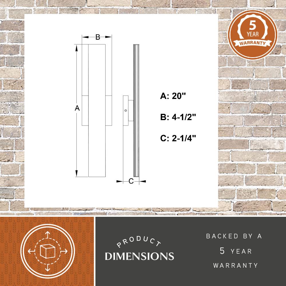 4.5-in W x 20-in H x 2.25-in D with 4.53-in W x 4.53-in H backplate