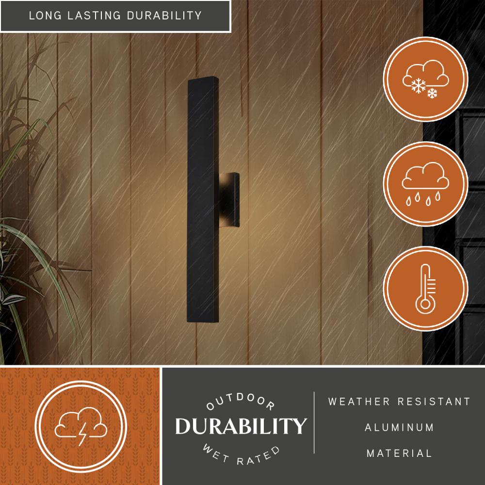 Embrace a minimalist aesthetic with the Owen LED outdoor wall light. Its sleek contemporary rectangular shape and backlit design create a soft, inviting ambiance, casting a gentle glow over your entryway or patio. The matte black finish adds a touch of modern sophistication, while its ADA-compliant depth allows for both indoor and outdoor applications.