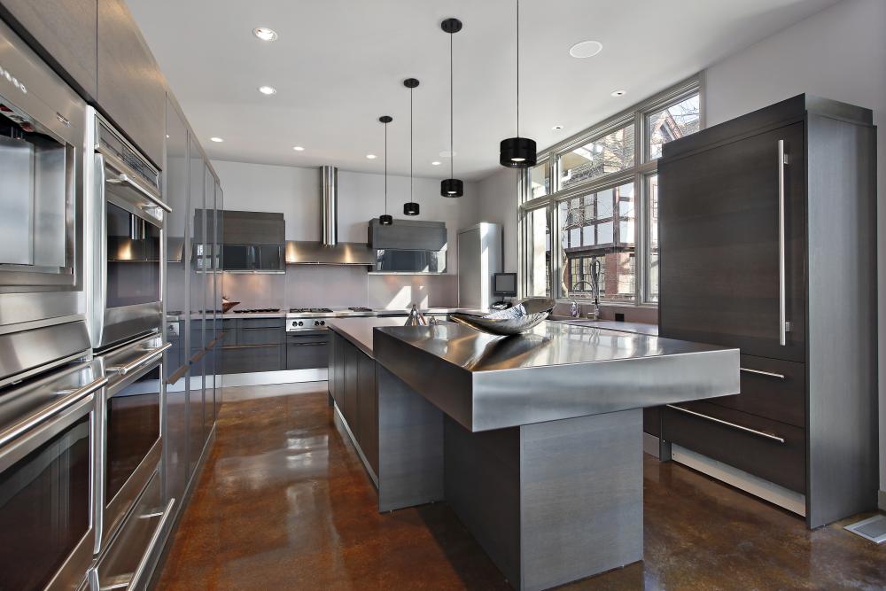 Single LED pendant with heavy gauged cast aluminum outer casting, visible black heatsink from two decorative openings around the outer casing and from the bottom of the pendant. 45 degree integrated reflector. Available metal finishes in brushed nickel white and black.