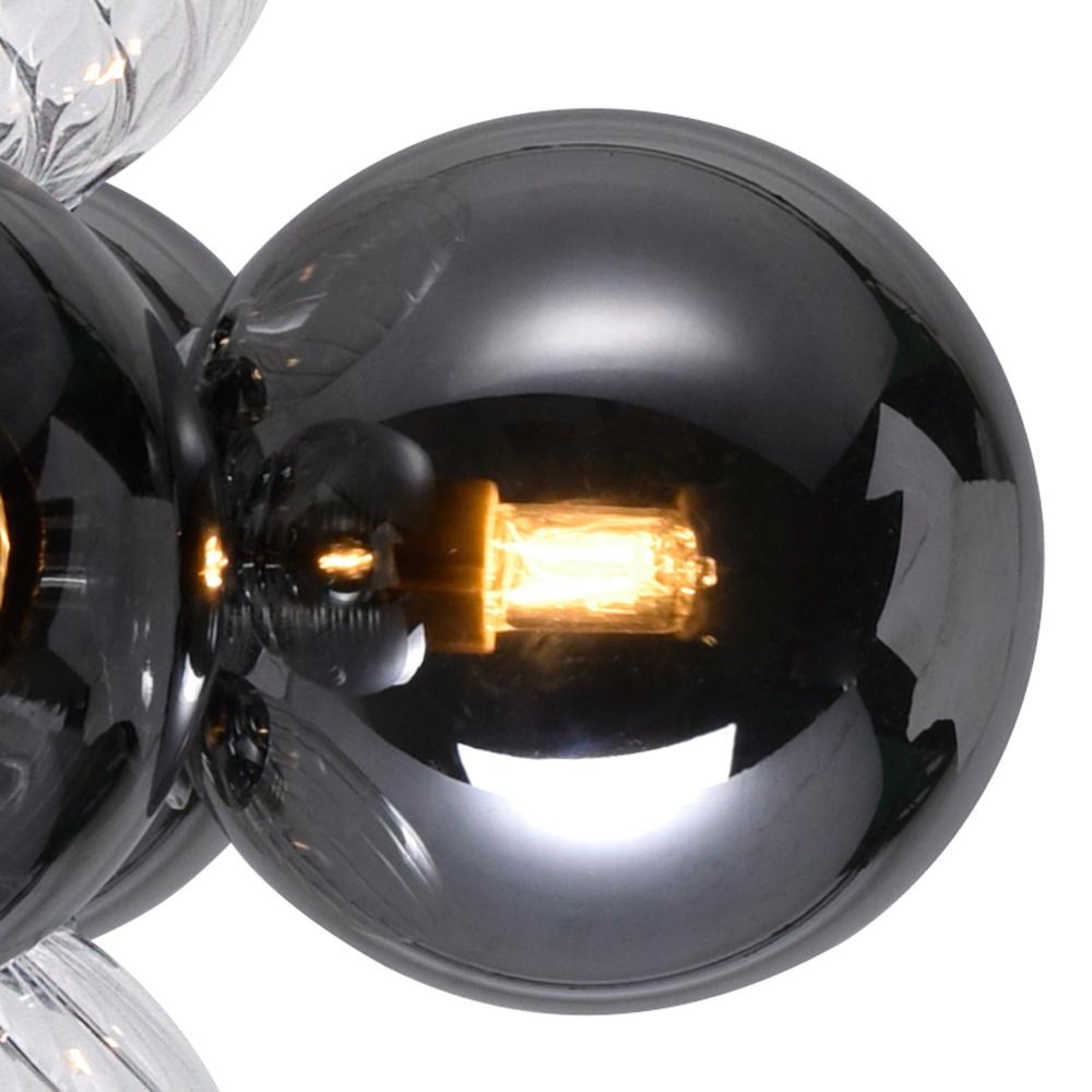 Modern Artistic Design Features a chrome finish with a cluster of clear and smoke-tinted glass orbs.