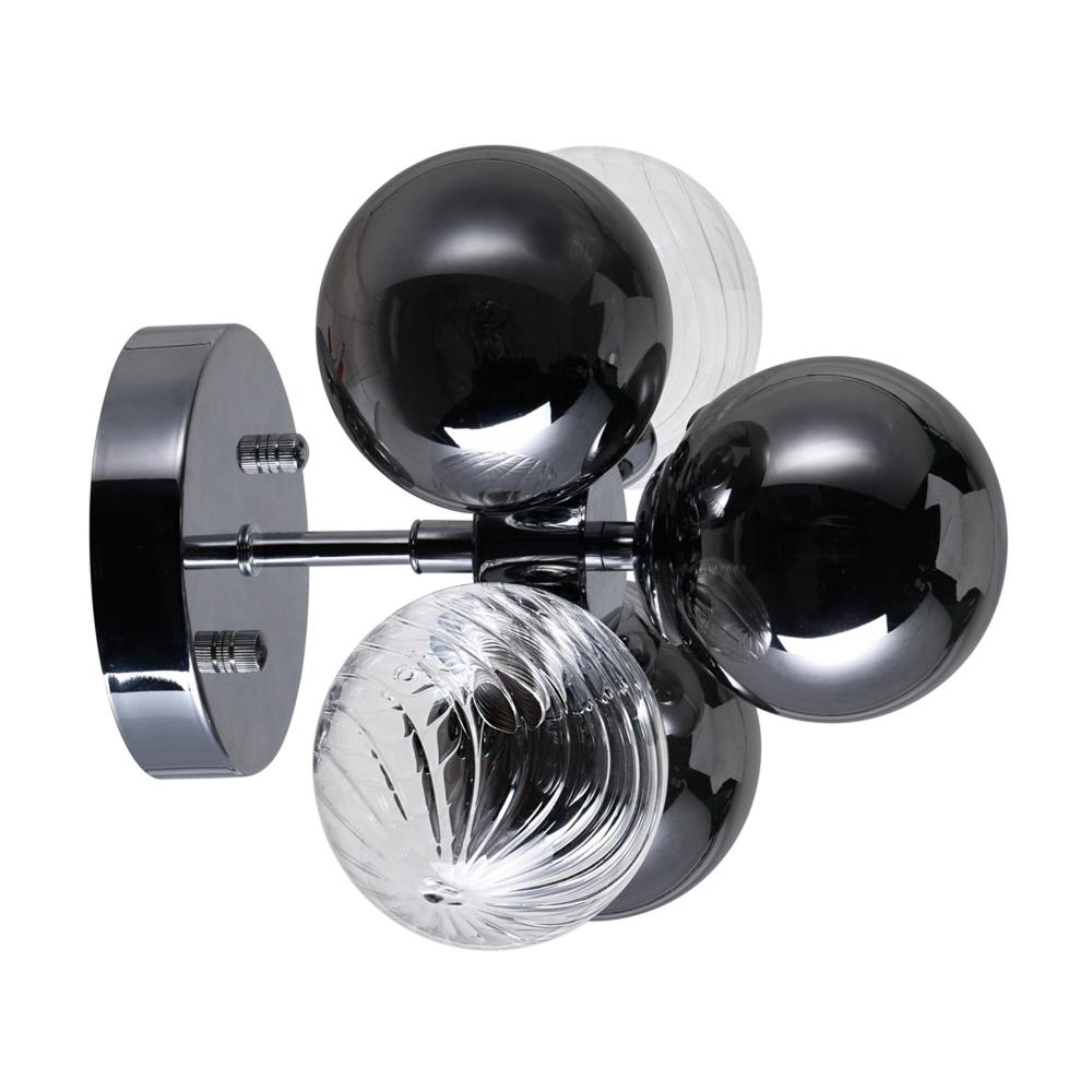 Add style and ambiance to your space with the Pallocino 3-Light Wall Sconce in Chrome. This eye-catching fixture features a cluster of clear and smoke-tinted glass orbs, creating a playful yet sophisticated look. Perfect for general mood lighting, this wall-mounted piece brings visual interest and soft illumination to hallways, bedrooms, or living areasideal for adding a unique touch to any modern or contemporary space.